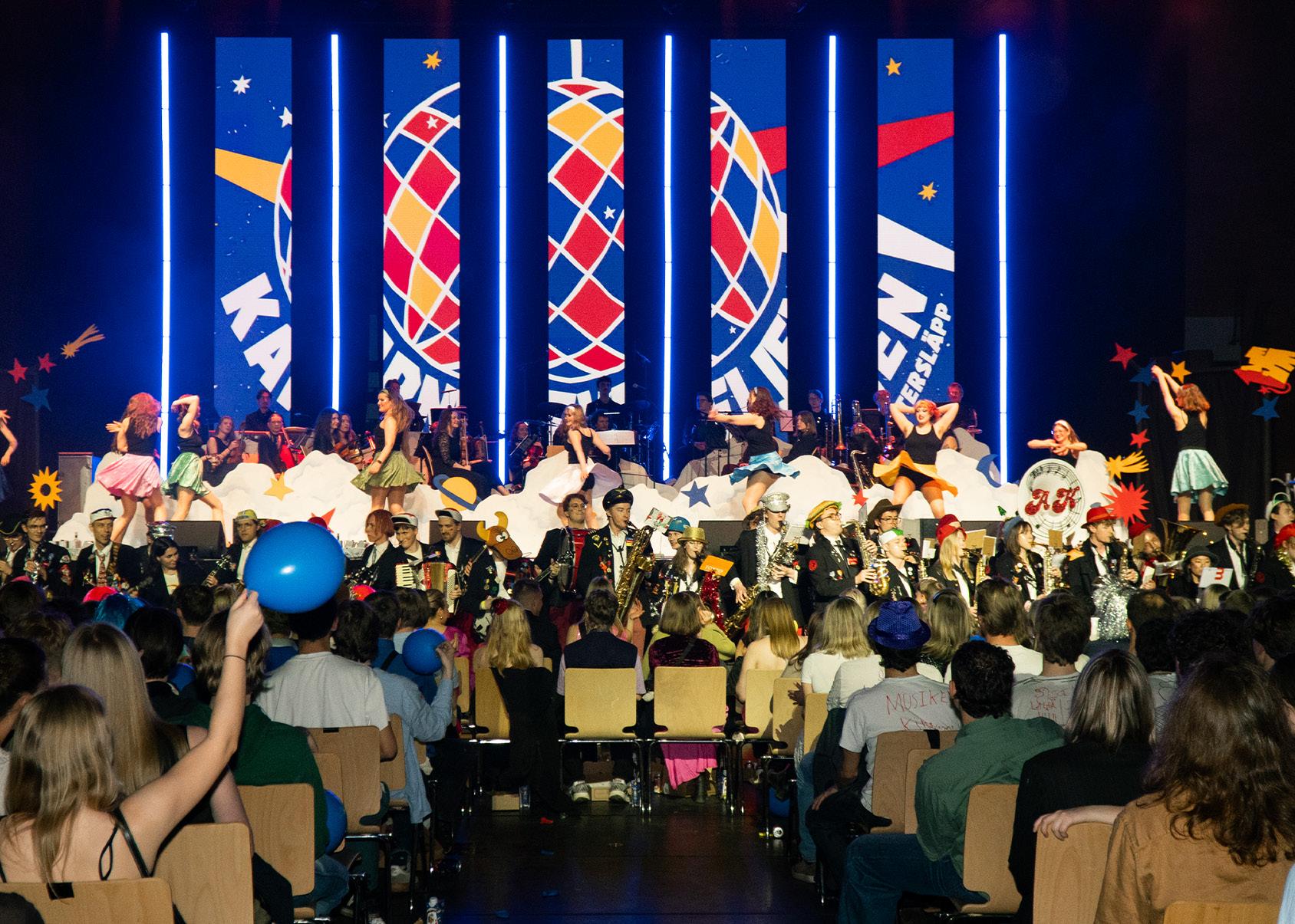 På Sparbanken Skåne Arena väntar tretusen ivriga studenter på att kicka igång karnevalsvåren. Det är dags för Karneveljen, en kväll fylld med kamp, sång och tradition. Lundagård är på plats för att föreviga kvällen.