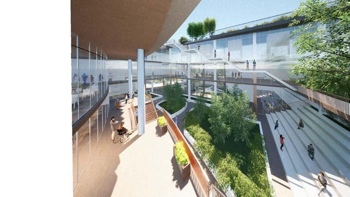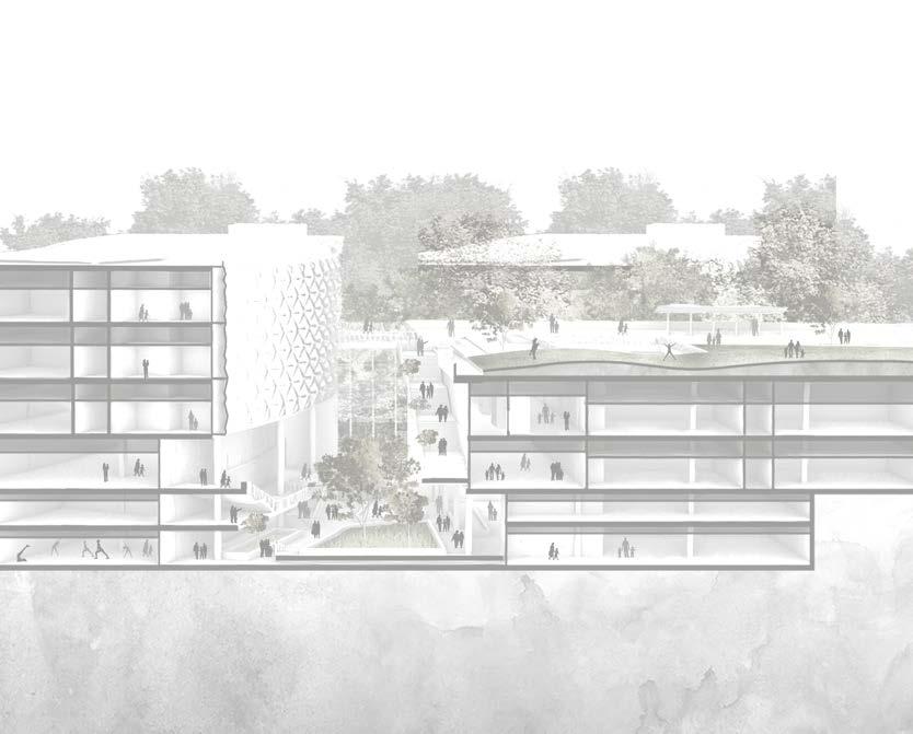 284 ED VISITS PER 1000 VISITS FOR MENTAL DISORDERS (SC AVG. 188) 253 ED VISITS PER 1000 VISITS FOR TYPE 2 DIABETES (SC AVG. 166) 5.77 ED VISITS PER 1000 VISITS FOR DEPRESSION (SC AVG. 2.85) 550 ED VISITS PER 1000 VISITS FOR HYPERTENSION (SC AVG. 488) 38% of the population is obese 18% of children are food insecure 22% of the population is 65+ HOSPITAL AS THRESHOLD EXCHANGE ACTIVE HEALTH CIRCULATION GATHER SOCIAL HEALTH PUBLIC COMMONS MEANDER HOLISTIC HEALTH NATURE REHAB CENTER SKYFARM HOSPITAL GROUNDFARM MIXED USE, RETAIL WALKING TRAILS NATURE CENTER MARKET MOB CUP PARKING DECK 2 MINUTE WALK RADIUS 5 MINUTE WALK RADIUS HEALING GARDENS MEANDER ZONE EXCHANGE ZONE GATHER ZONE 05