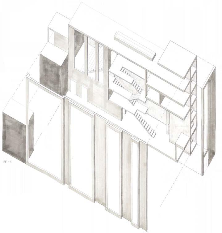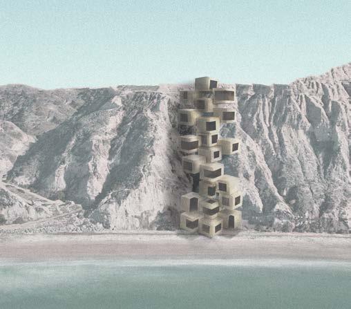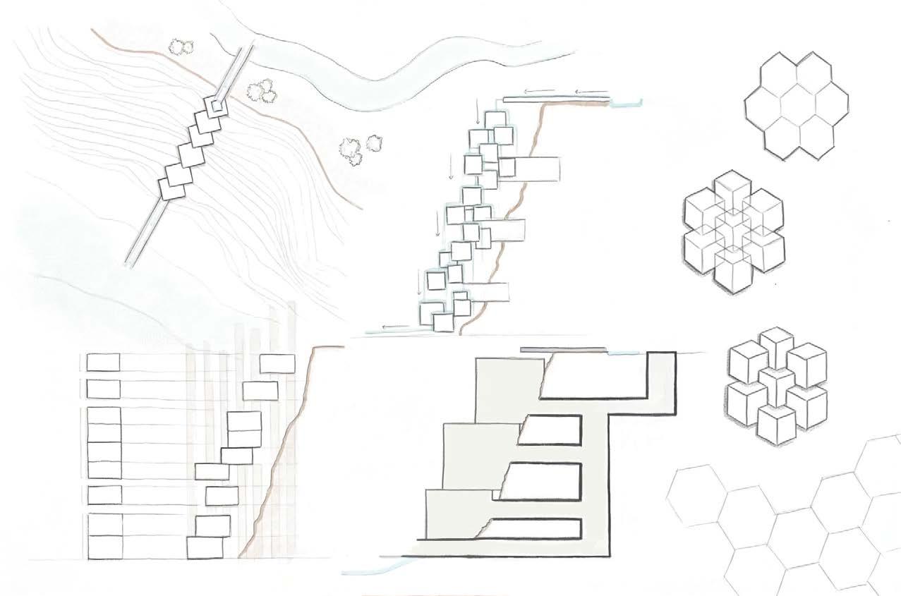 The residents of this hive are inspired to leave their individual colonies with a desire to investigate the water trickling down the exterior facade. The rigorous climb of the stairs highlights the effort it requires to explore and understand a realm that is different from our own.