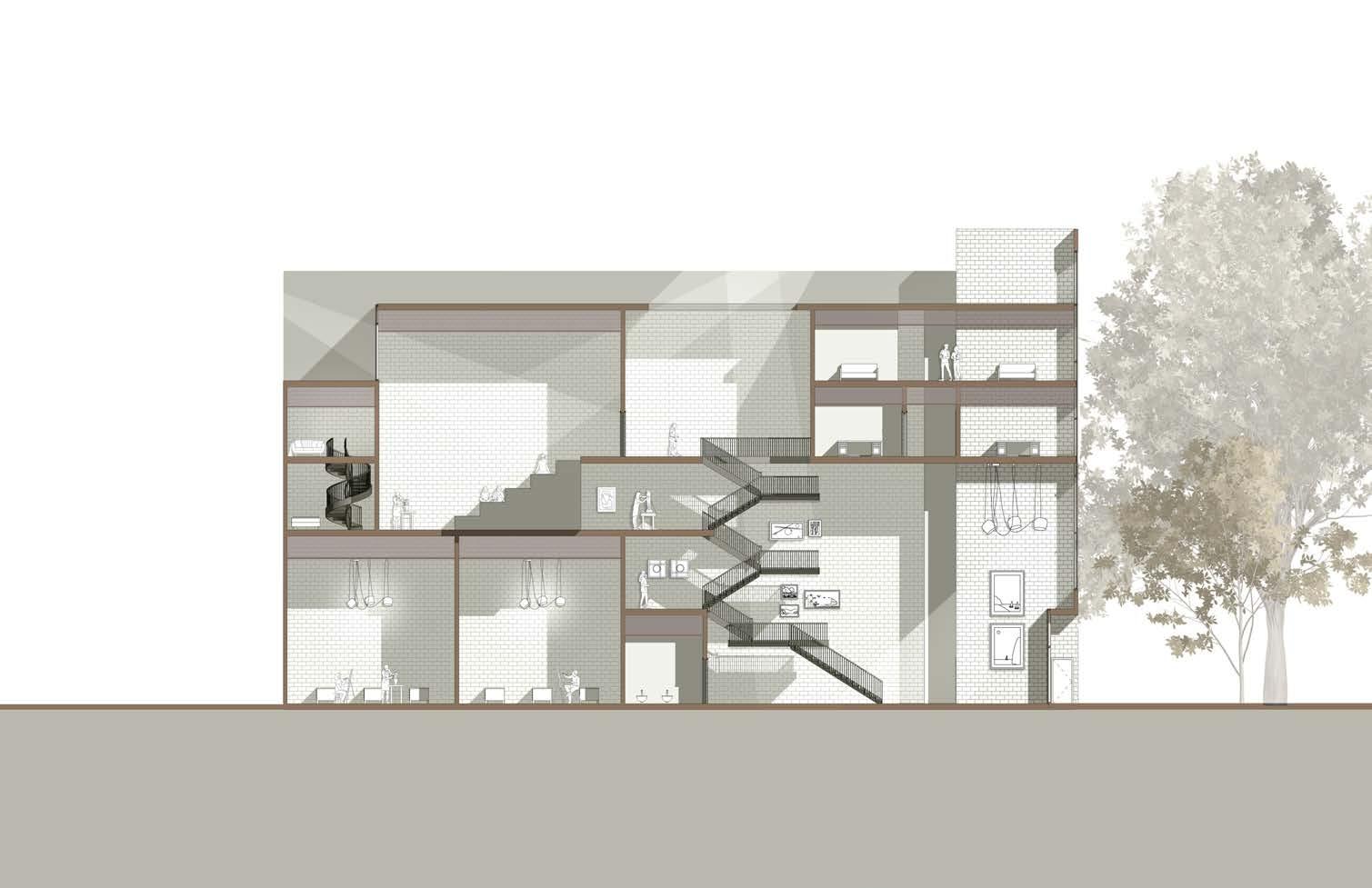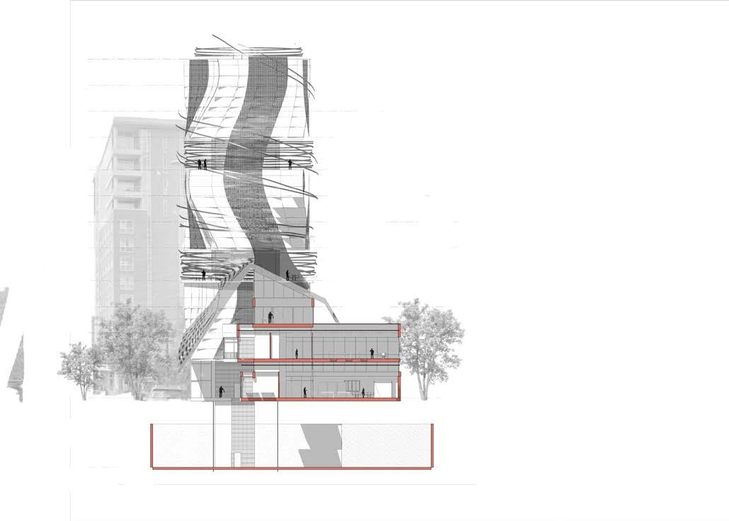 Montessori education consists of four levels of developmental independence; physical, intellectual, social, and moral. Maria Montessori envisions a space that promotes self-reflection and encourages artists to express themselves. The central staircase acts as a tiered gallery space and is representative of the instrinsic motivation necessary to achieve enlightment. The vertical lightwells are designed to provided plentiful natural daylight for a warm and inviting learning environment.