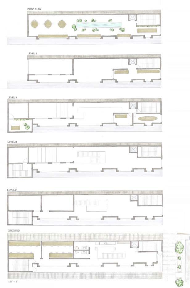 Level B2 Indoor Water Feature Level B1 Therapy + Spa Rooms Ground Level Dining Hall + Recreation Level 2 Study Rooms + Private Gym Roof Plan Reinforced Concrete 03