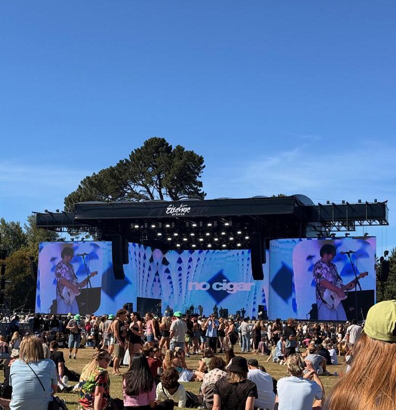 Day 2. The sun was out, and the head was blurry, so we chilled in the sun, sitting down listening to There’s A Tuesday, who did a mint cover of Radiohead. Gearing up for Kora, we headed over to the Park Stage, where it was now 5pm, and the sun was streaming onto our backs. We almost cried looking at the clock at how fast the day had gone. I forgot how good Kora was! ‘On My Mind’, ‘Politician’, and of course’ Drop Dead Killer’ grew legs and took us away! We then stayed on for the lovely Ocean Alley, who definitely brought the crowd together with much love.