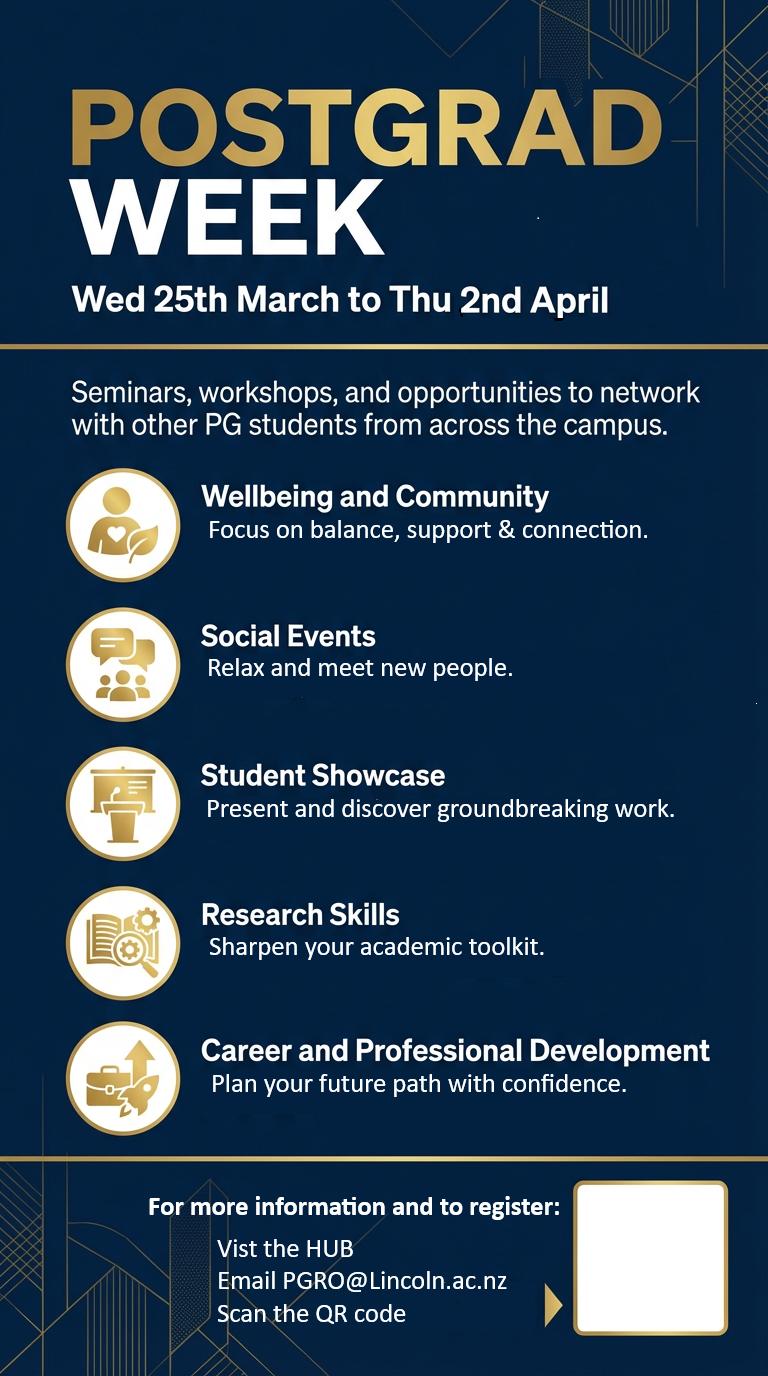 I certainly hope that all of you who were able managed to make full use of our LUSA events during ORI’26, which I hope helped facilitate your ease into these surroundings here at LU. It was a pleasure to meet many of the LU Postgrad body from here within Aotearoa/NZ, and those who have travelled to be here. It has been wonderful to meet and have a quick korero with somany folks. Thank you for coming up to me and saying hello!