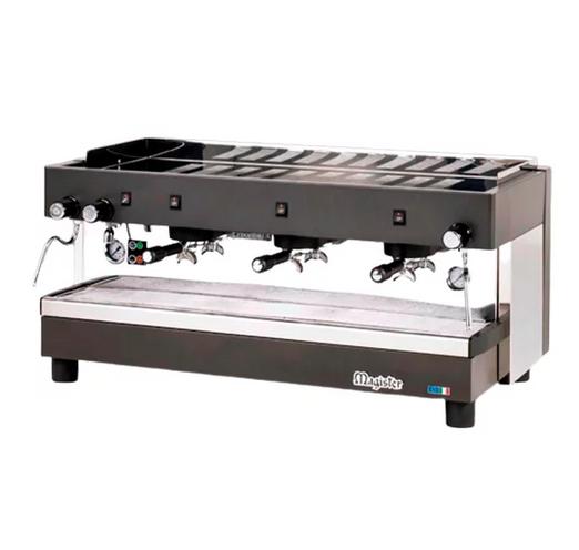 Cafetera de dos grupos con cuerpo de acero inoxidable
