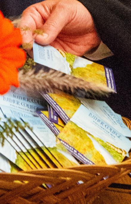 Luther faculty, staff, and alumni collaborated on making a native prairie seed mix to serve as a memento of the event. Mark Udstuen ’97, president of Shooting Star Native Seeds in Spring Grove, Minn., supplied the seed, and Julie (Strom) Hendrickson ’93 illustrated the packaging.