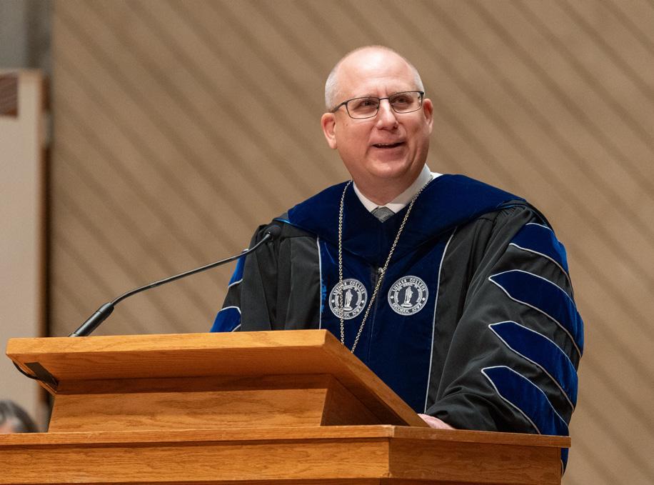 During a heartwarming ceremony in the Center for Faith and Life, President Chamberlain addressed the Luther community with a hopeful message: “What we need is here. Called by our mission, grounded in our identity, guided by our values, animated by the spirit, and sustained by our community, we have all that we need to catalyze the creation of a more sustainable and just world. We have all that we need to elevate individuals, communities, and society, one graduate at a time.”