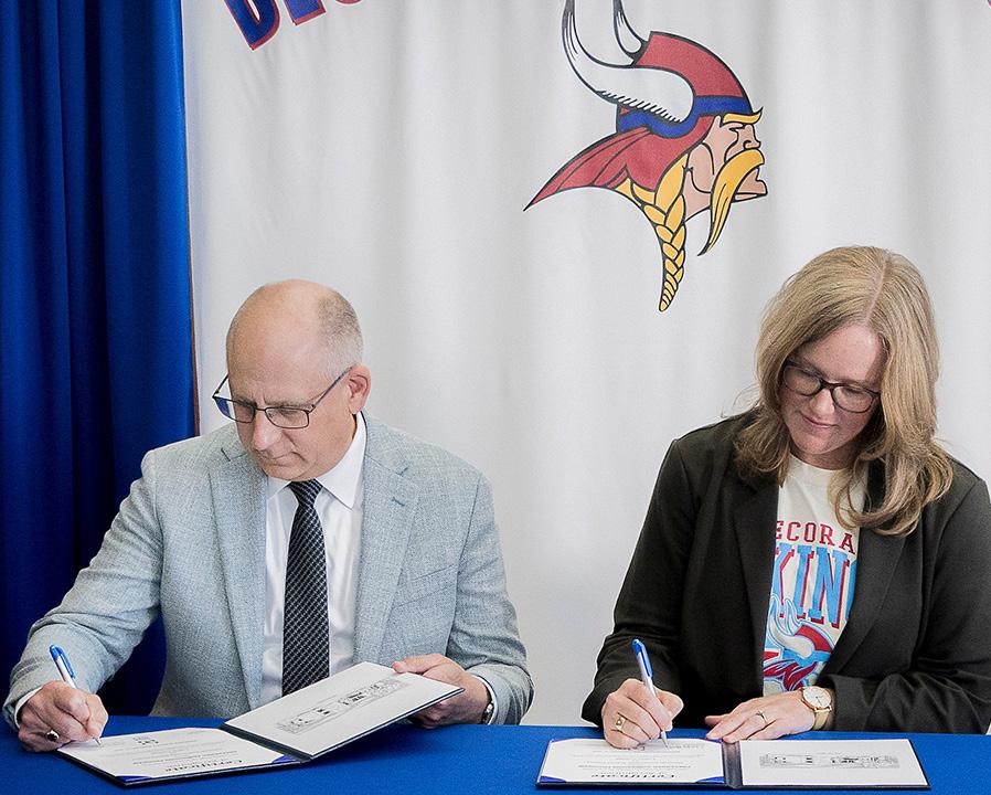 President Chamberlain and Cindy Goodner, Decorah Community School District Board of Education president, signed a partnership in September.