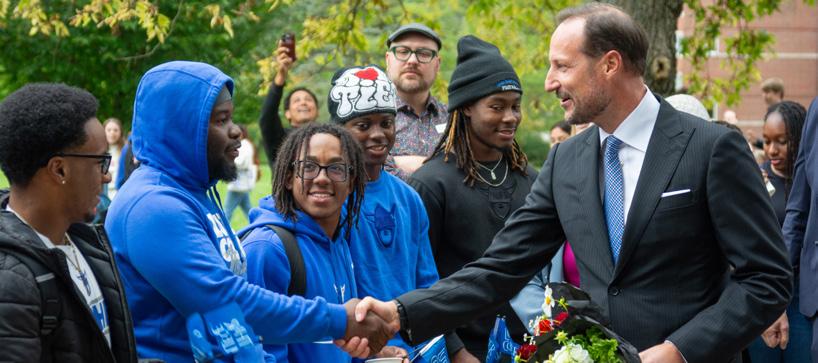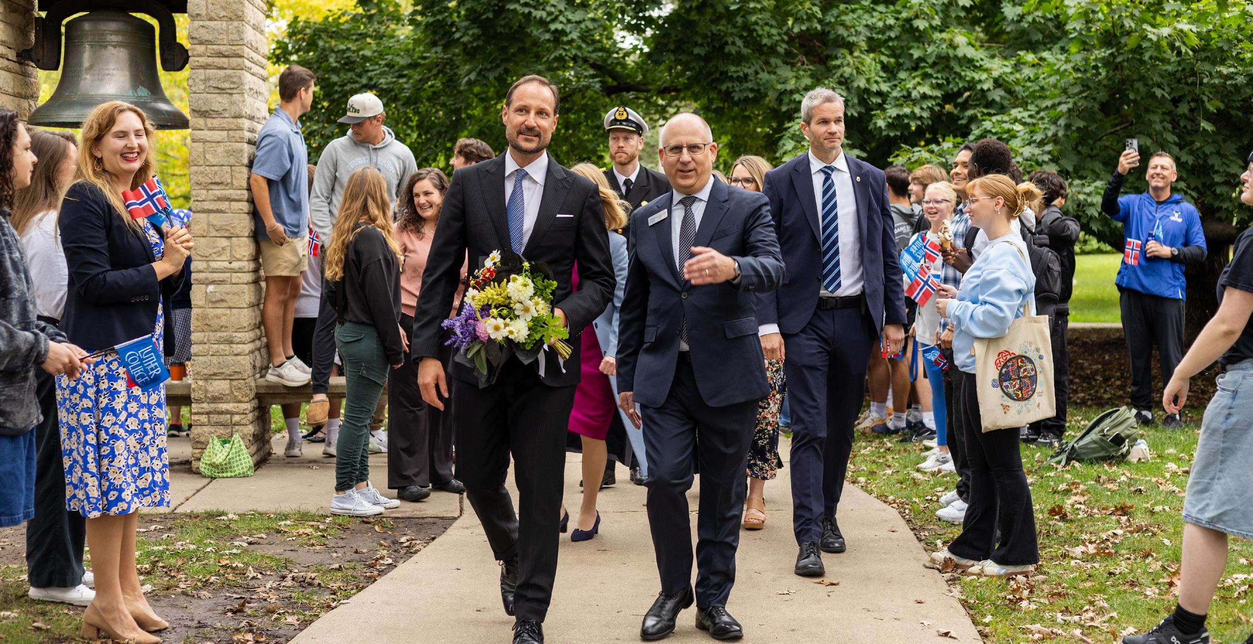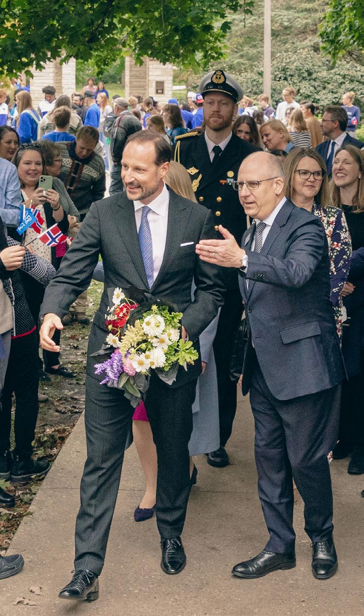Students celebrated the ties between Luther College and Norway during a visit in October from His Royal Highness Prince Haakon of Norway. Scan the QR code for video highlights.