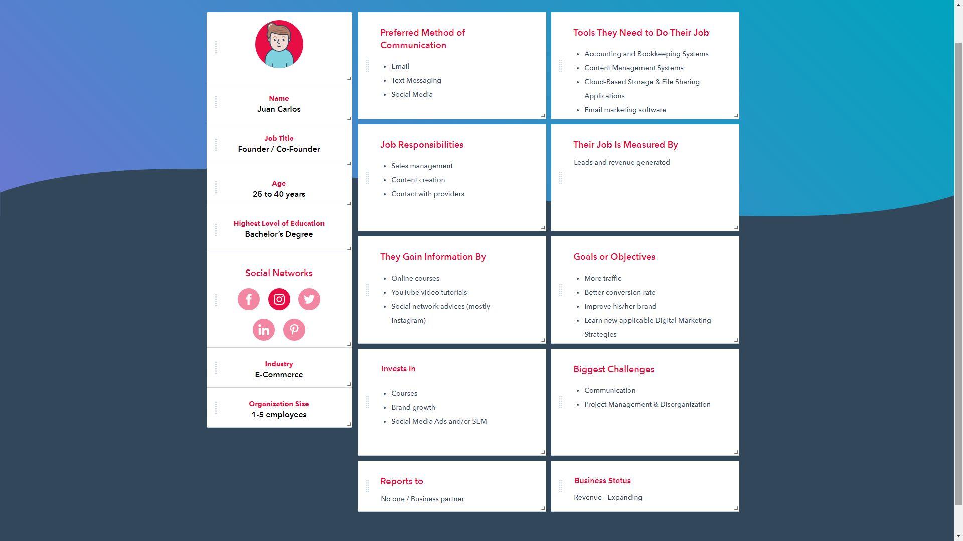 Es dueño/a de su propia empresa. Cuenta con 1 a 5 empleados. Utilizan Email, CMS, gestor de archivos en la nube.