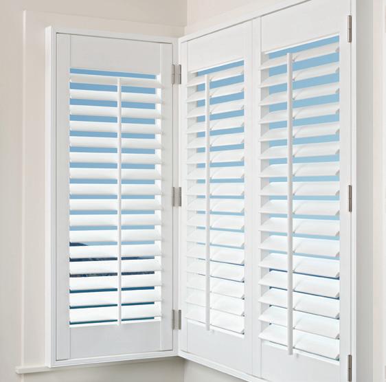 PolySatin Shutters can also be applied to bay windows, corner windows and bow windows, usually as standard rectangular installations.