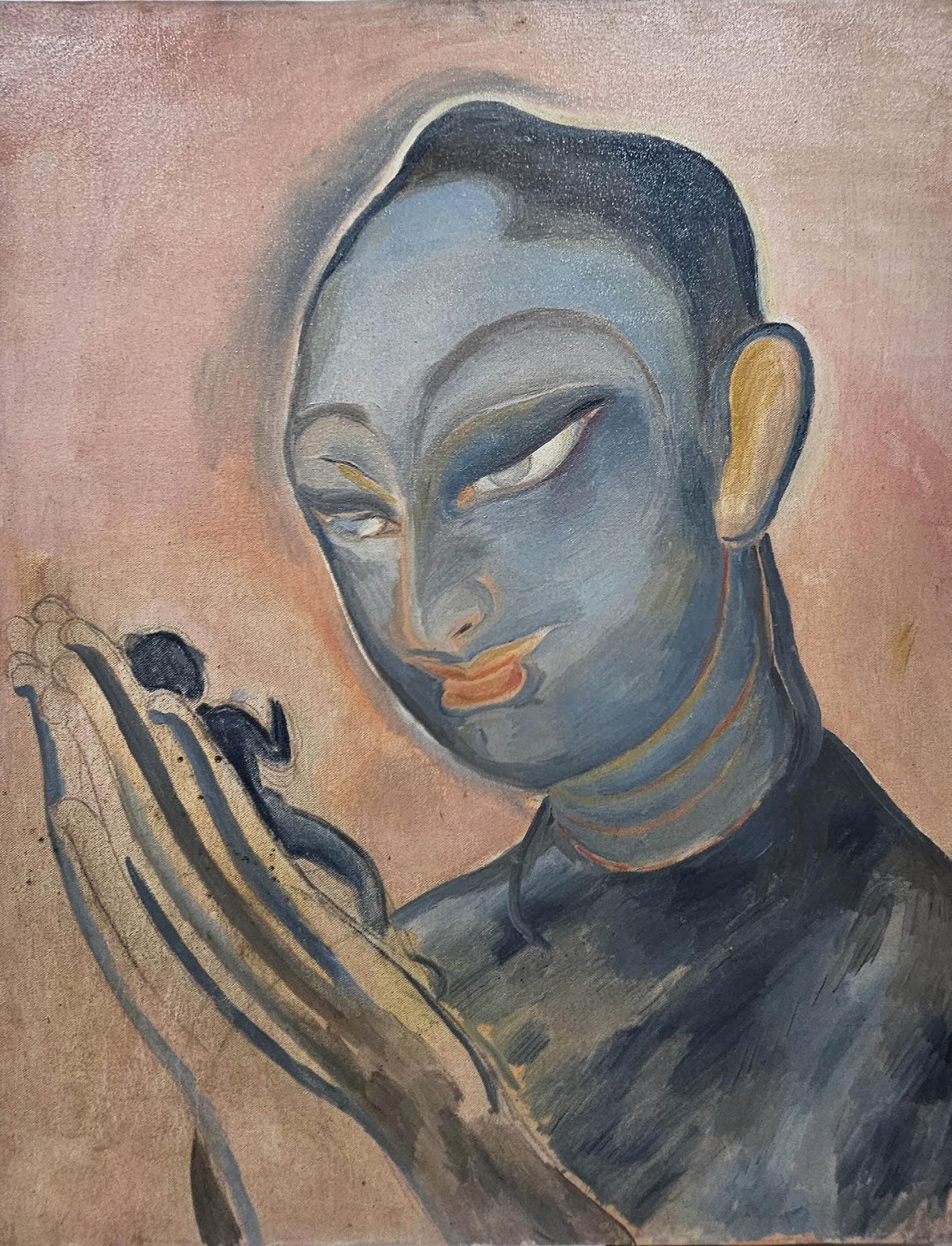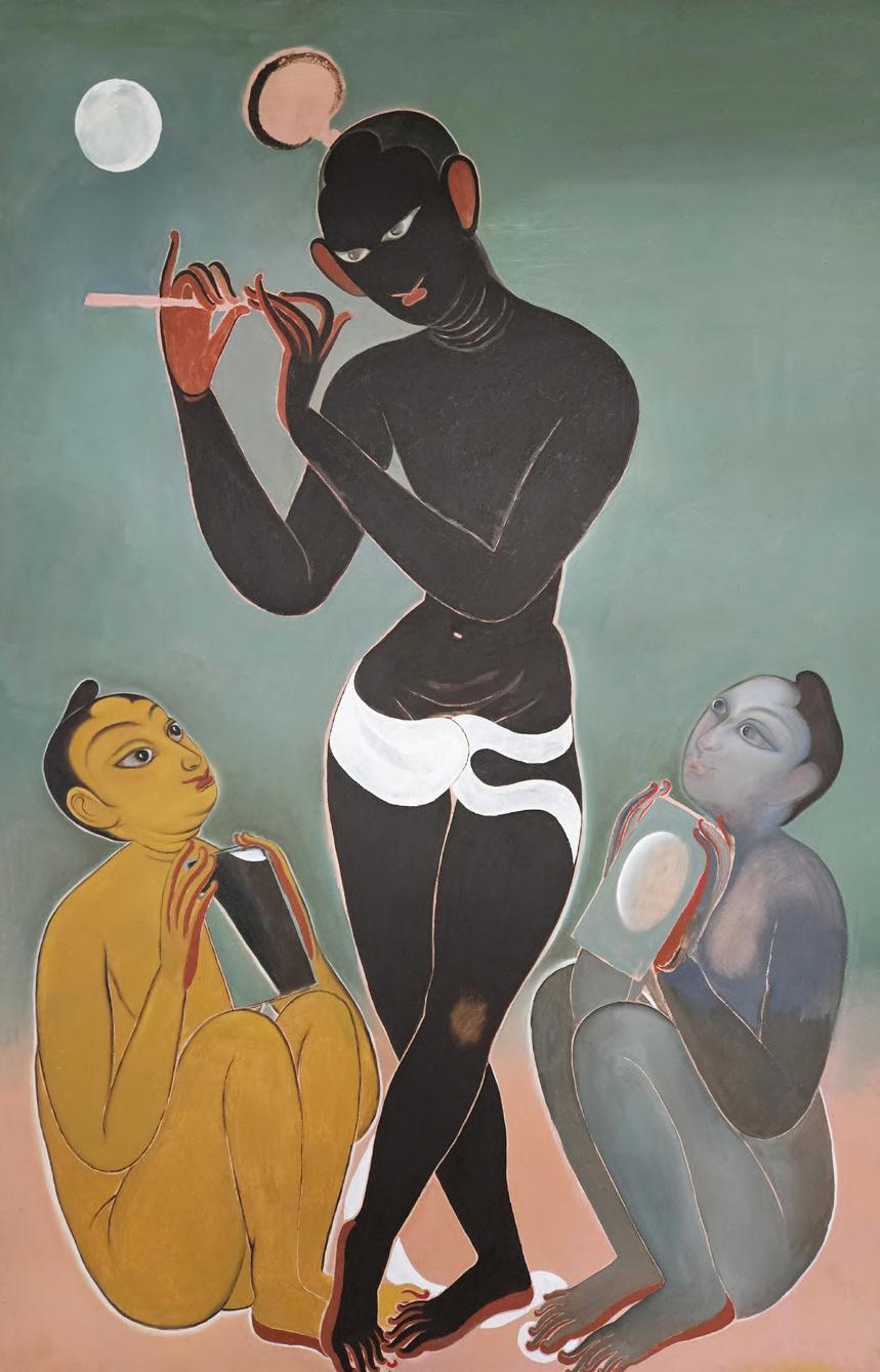 Each canvas is a convergence of experience and memory. Shivan draws on his personal journeys of pilgrimage and his vast repertoire of visual references: Persian miniatures, Indian painting traditions, colonial works, and Chola bronzes are woven into compositions that feel singularly his own. These influences, filtered through his painterly language, manifest as richly layered narratives, where themes of doubling, identity, and fluidity echo devotional and poetic traditions. Love, transformation, and form intermingle with an effortless lyricism, offering a contemporary meditation on timeless human experiences.