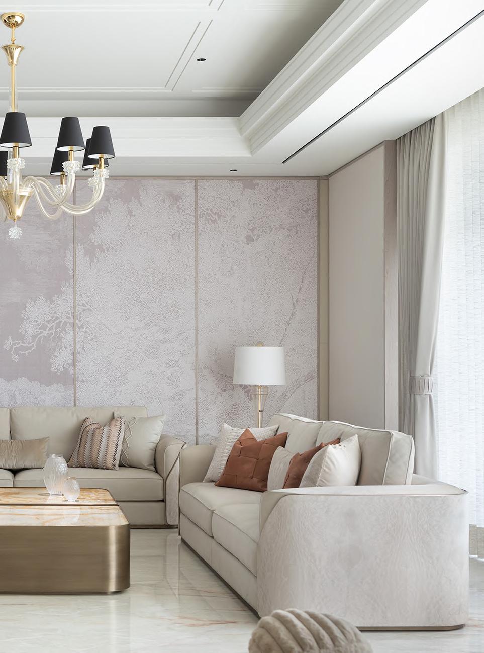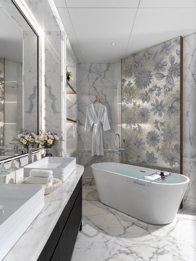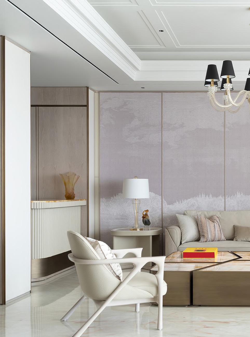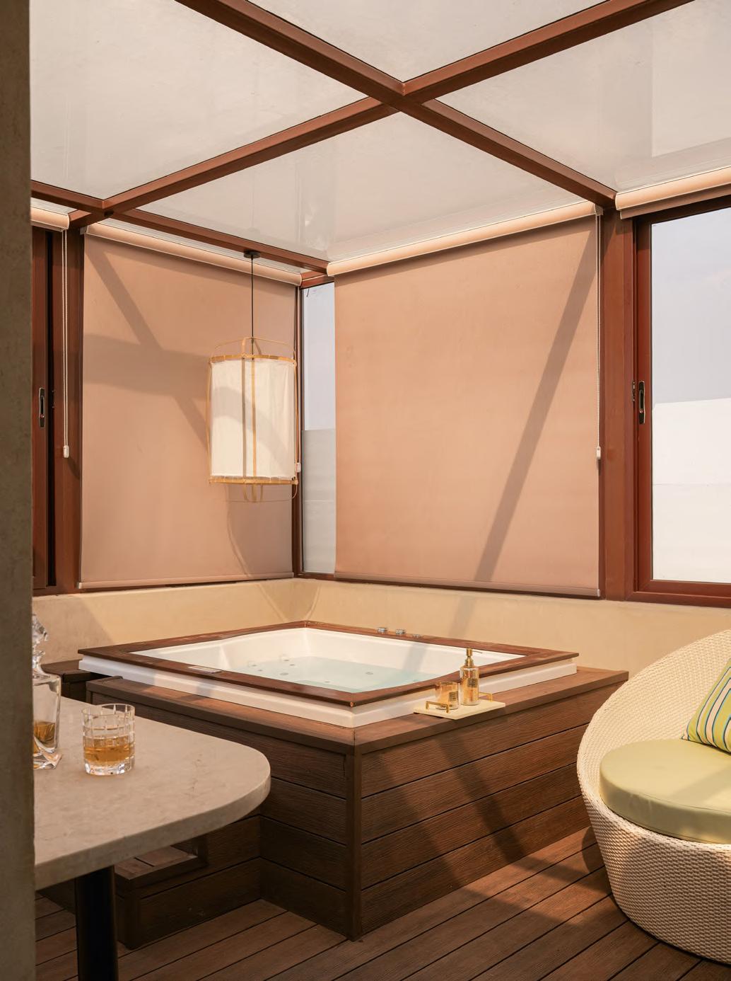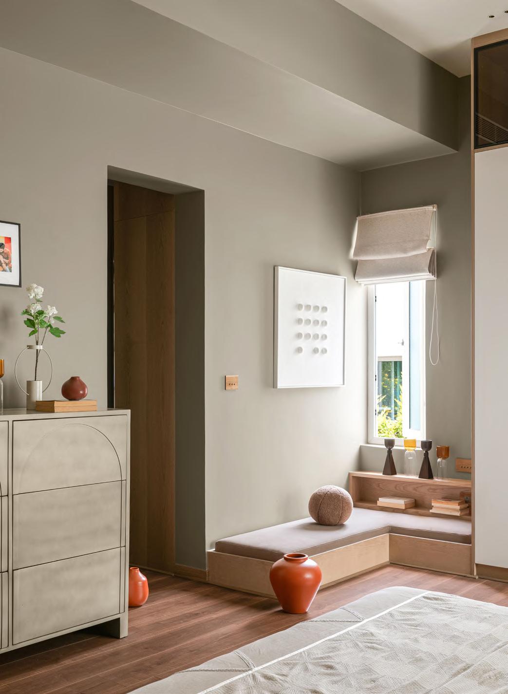spectrum of coastal-inspired soft monotones that acts as a meditative backdrop. Here, quiet luxury takes centre stage: understated textures, refined materials, and curated artworks lend depth without overpowering the serenity of the envelope.