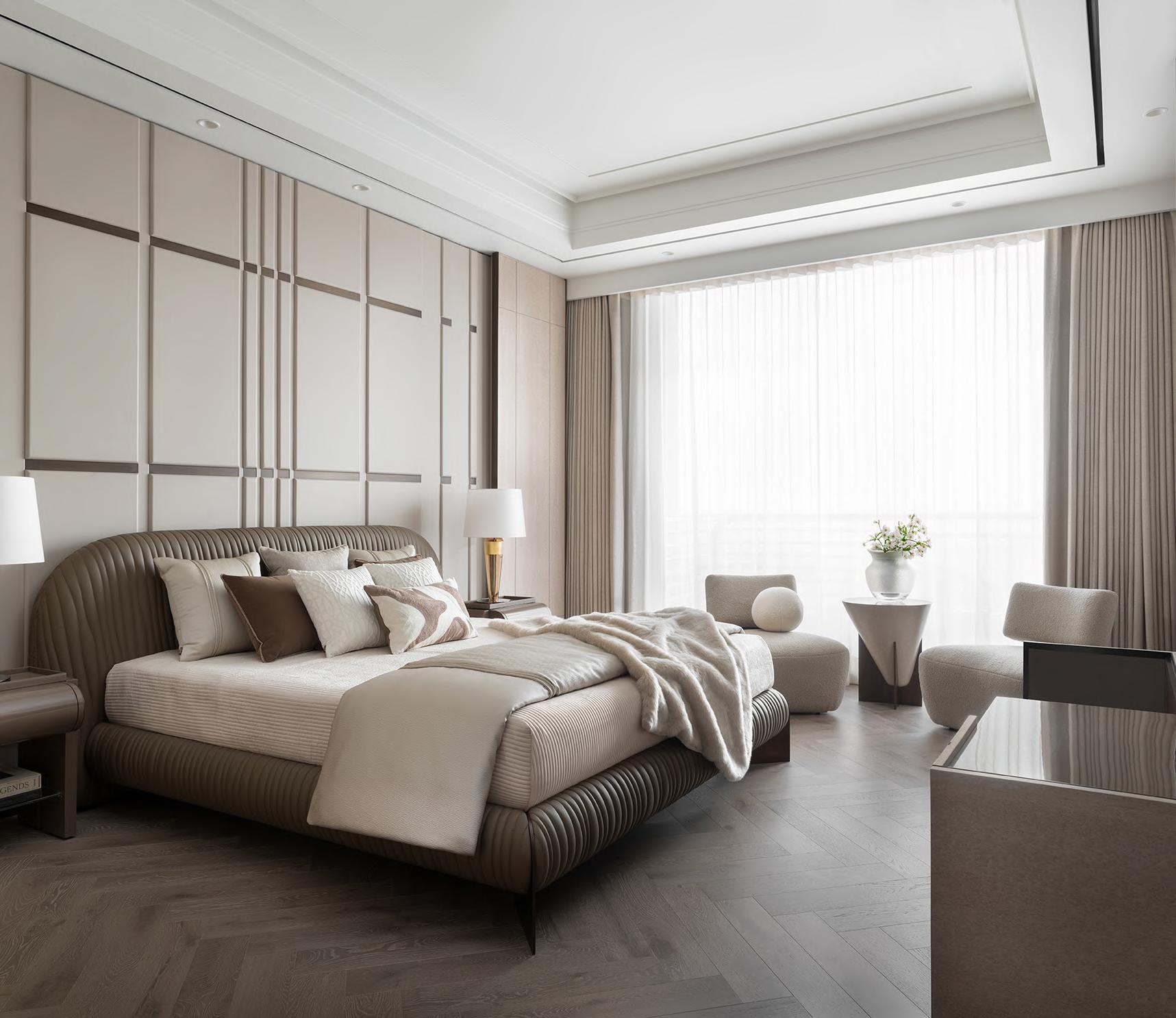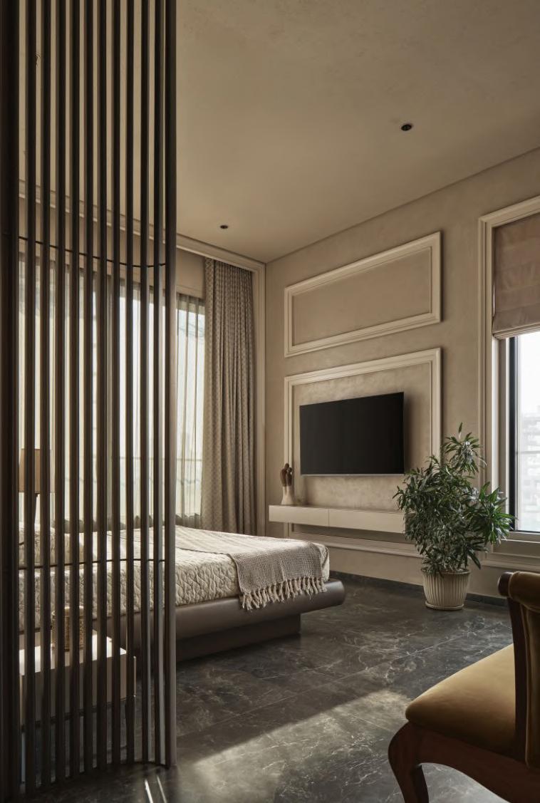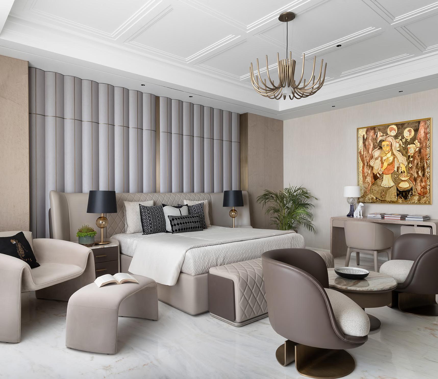 HS Desiigns shapes a sanctuary of quiet elegance, blending classical sensibilities with contemporary restraint.