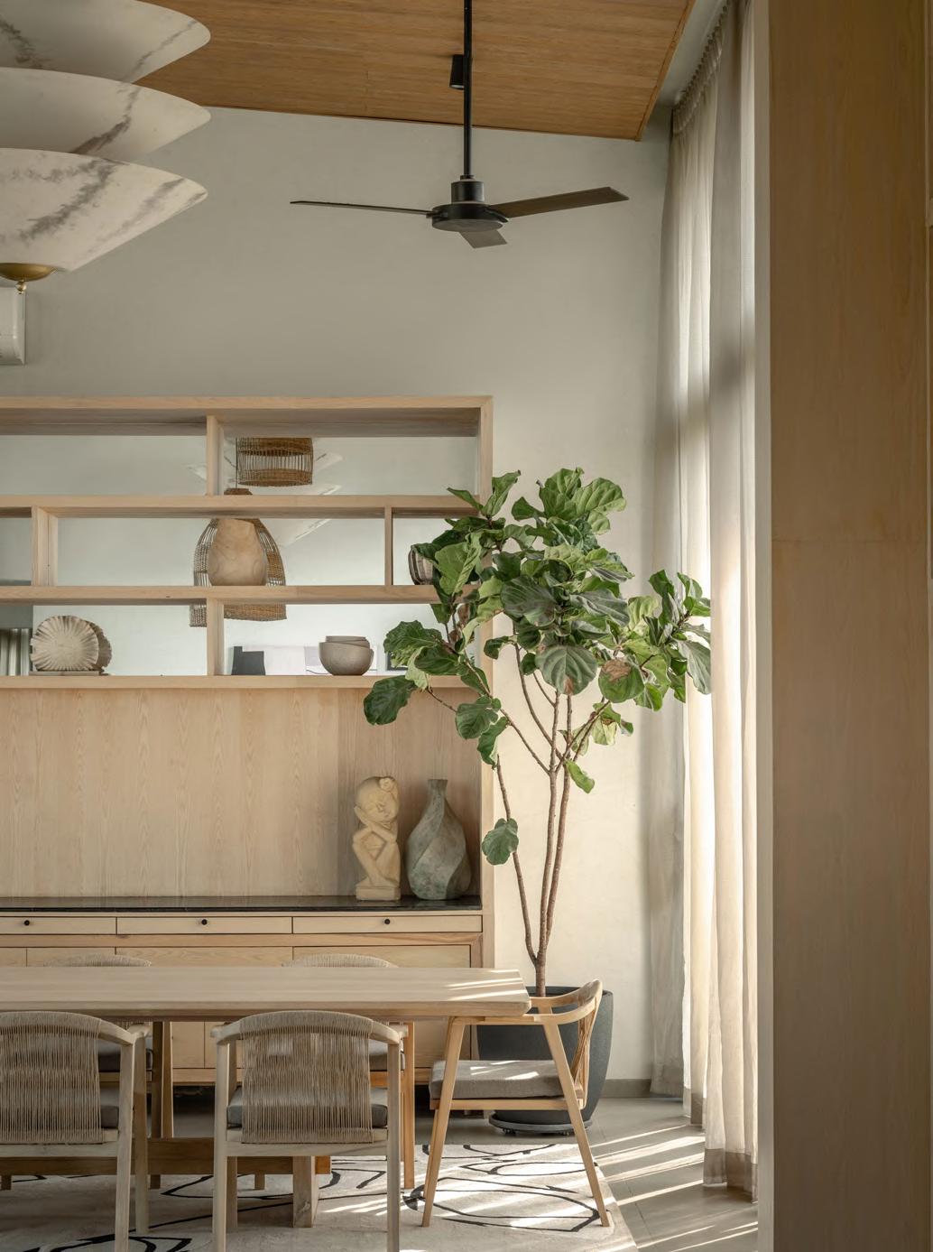 volumes and calming tonalities. The home feels rooted, not imported; serene, yet undeniably modern.