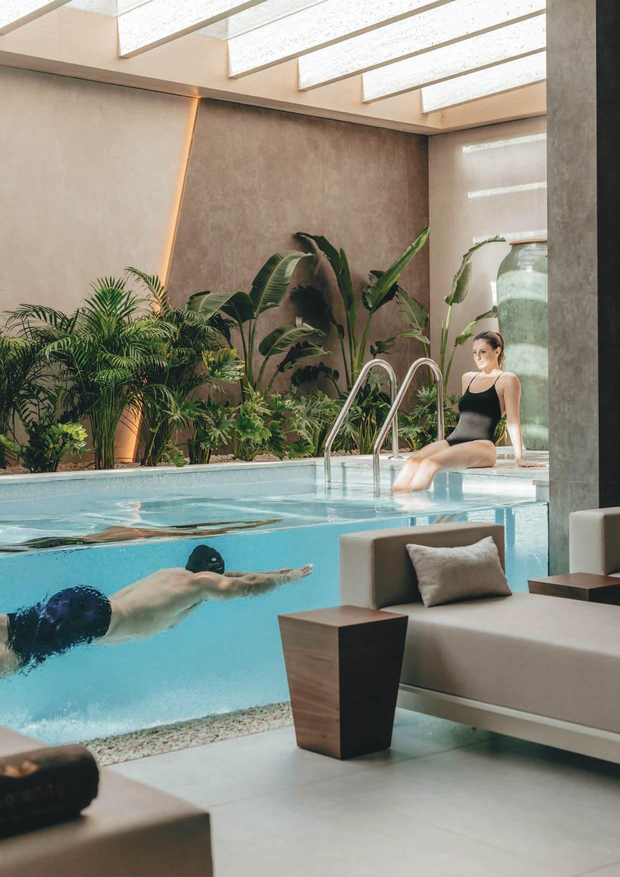 The indoor swimming pool is part of the Thermal Oasis of the Serenity Spa — The Art of Well Being. Make a reservation from the exclusive treatments menu and get complimentary access to the entire wet facilities for the day. SCAN ME TO SEE MORE