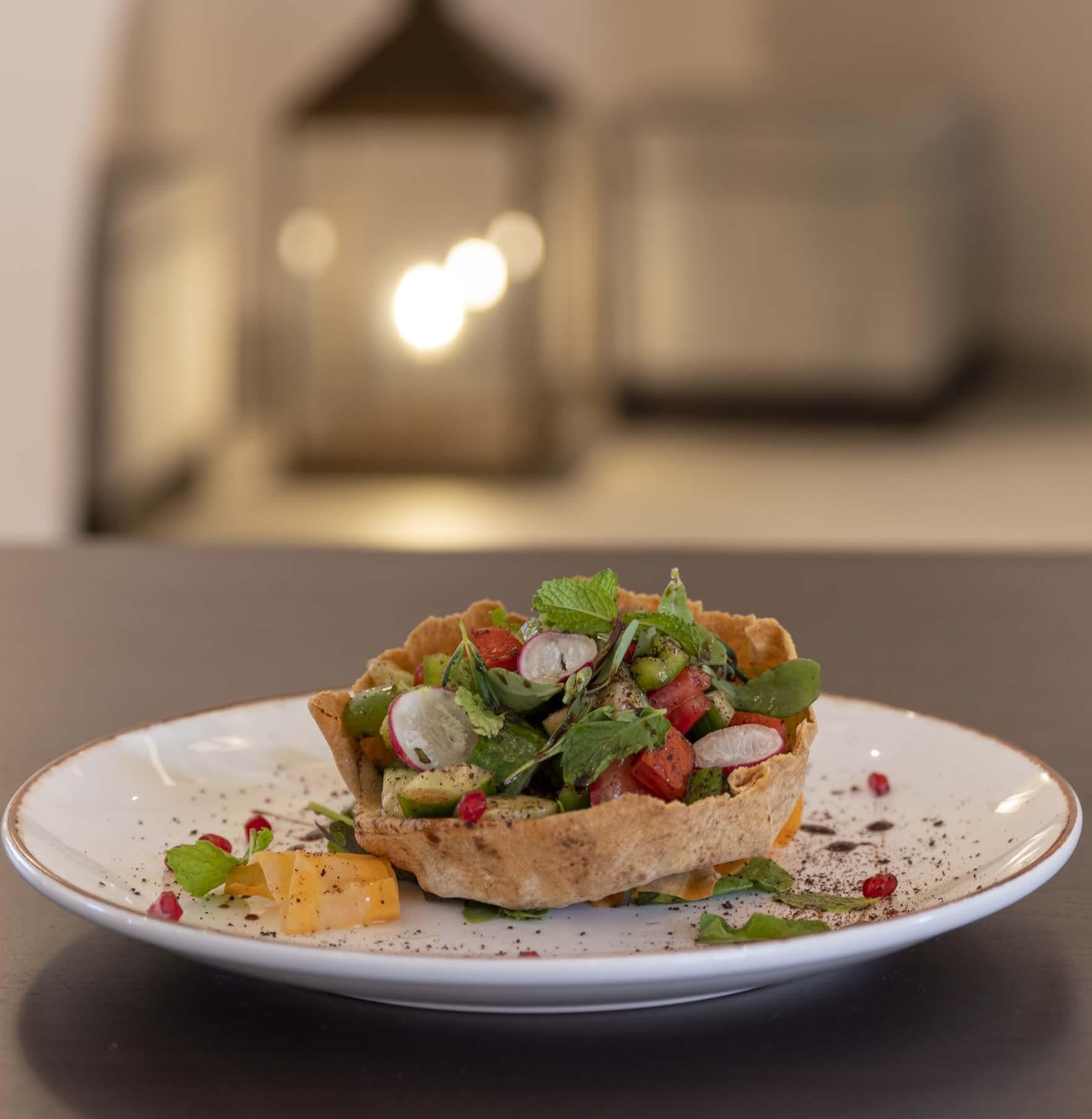 The light of the hand-crafted Moroccan lanterns and the Andalusian live music played on lute and tradi tional derbouka offer an intimate and cozy atmosphere during dinners.
