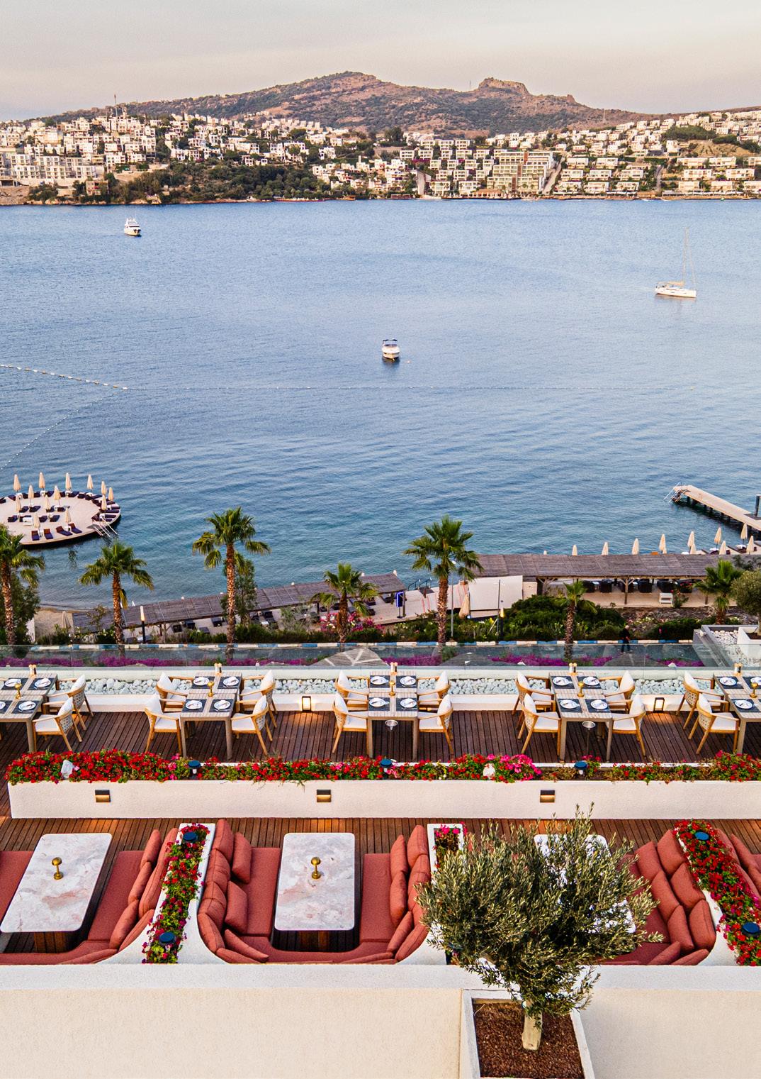 Cape Bodrum Luxury Hotel & Beach is positioned above the coastline, offering 109 rooms and suites, including a private villa. Among them, 53 rooms and 29 suites provide direct swim-up access, creating an effortless connection between room and water.