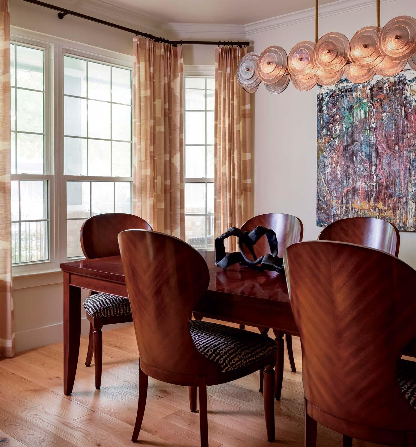 “We wanted to disrupt what you typically see in transitional homes by going bolder,” the wife notes. To realize this vision, designer Cori Pfaff focused on the clients’ defining stylistic influences: the work of Lebanese luminary Claude Missir, a devotee of 1930s French modernism; and the Museum of Modern Art in Manhattan, both the gravitas of the galleries and the exuberant energy of its famous shop. “The goal was to juxtapose artdriven sophistication with a feeling of playfulness,” Pfaff explains.