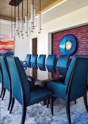 “THE UPHOLSTERED PIECES FEATURE CLEAN LINES TO COMPLEMENT THE ARCHITECTURE, BUT IT WAS ALSO IMPORTANT TO BALANCE THOSE LINES WITH RICH MATERIALS.”