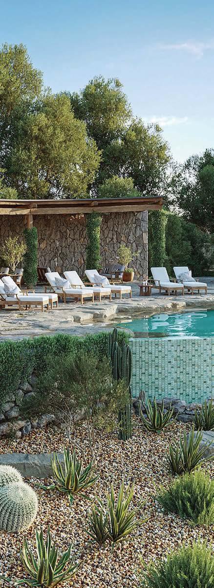 Outside, Pfaff selected minimalist furnishings in neutral tones to echo landscape designer Roy Adams’ plantings, while not distracting from the interiors. And though there’s an outdoor kitchen and pool to entertain guests, the exterior spaces are meant to be contemplative in an ode to Japanese Zen gardens. “We’d always been so transient that we never had the luxury of truly settling down,” the wife adds. “It’s been a treat to tailor each space to how we actually use it.”