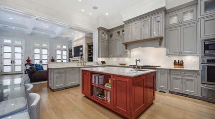 Top A perfect balance of customized function and aesthetics comes together in this complete remodel of a macaroon baker’s dream kitchen. Right SCD transformed this unused dining room into a moody cocktail lounge, featuring a custom-designed wet bar with space for glassware and liquor. Far right Clean-lined furniture was selected to transform a sitting room into an ideal reading room.