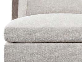 Except for a few special pieces of art, Mies van der Rohe daybed and grand 19th-century Louis XVI-style mirror, Goforth curated an entirely new collection of furniture and accessories to reflect the owner’s vision. And she conjured a soothing color palette comprising shades of milky whites and faint neutrals. While the designer is known in local circles as the “Queen of Color,” her foray into neutrals this time around was spot on thanks to her expert use of texture. “It was about creating an ethereal experience,” Goforth notes. “My client loves the idea of airy spaces that make you feel as if you’re floating through clouds as you move from room to room. At the same time, she wanted interiors that feel cozy and cuddle her like a blanket.” Nodding to the owner’s flair for high fashion, Goforth brought these dreams to life with help from couture fabrics in the form of silk draperies, wool rugs and both mohair- and boucléupholstered furnishings. Dressmaker details such as tufting, French pleats and bullion fringe add more depth amidst the monochrome layers.