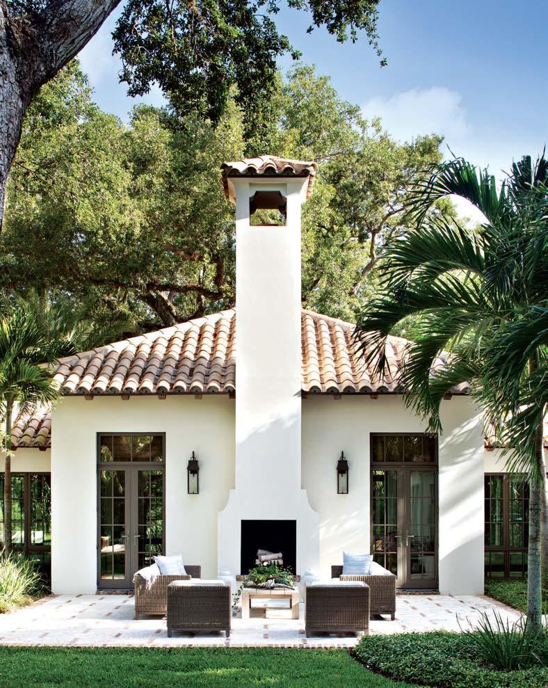 Southern luxury blends with European charm in this home designed for a young family. Hanging above the iron entry door by Olympus Doors is a Charleston yoke-mount light from French Market Lanterns.