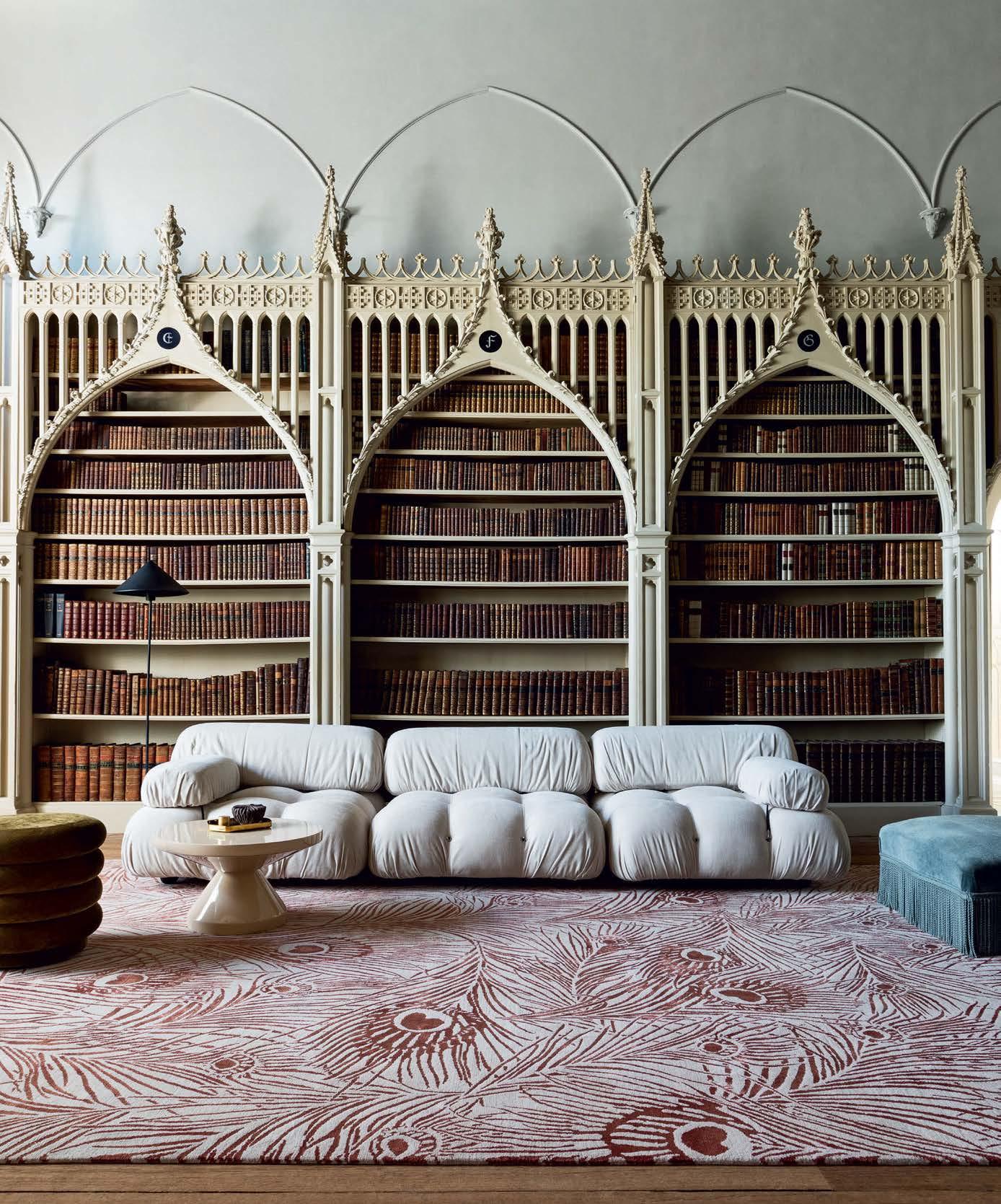 Sense. Modular sofas, armchair and ottomans, designed by Studio Roche Bobois. Cestello. Cocktail tables, designed by Gabriele Fedele. Mariposa. Floor lamps, designed by Marcel Wanders. Botanica. Rugs, designed by Emmanuel Thibault.