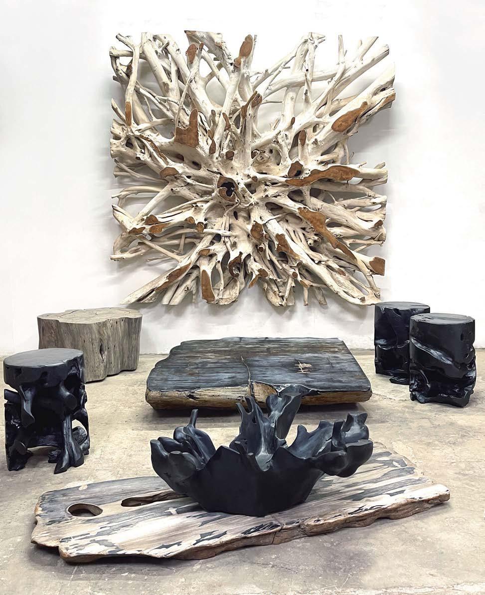 Applying elements of nature, this show-stopping artisan furniture is custom designed to play well with your treasured collectibles.