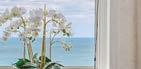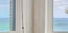In the owners’ bedroom, the designer focused on neutrals and soft materials to create a sense of retreat. A cashmere rug provides sumptuous texture underfoot, and walls clad in an earthen beige cocoon the space in warmth. The tone becomes even more ethereal in the primary bathroom, where Calacatta Gold marble forms a niche surrounding the tub, reflecting sunlight diffused through white drapes. “Those sheers add a layer of translucency,” Horner observes.