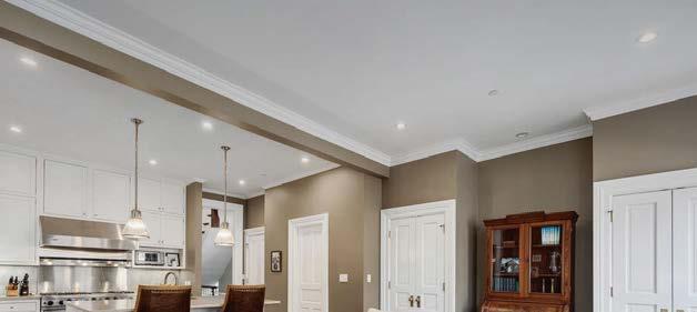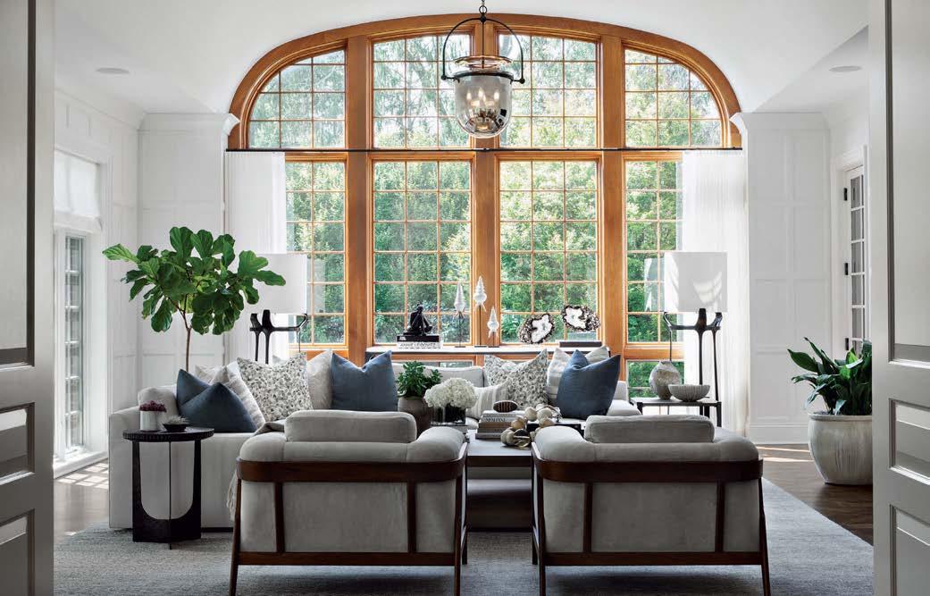 The interiors are the result of a talented pair who gave the clients the elegant comfort they desired. Early on, Dufresne worked with designer Natasha VanScoyoc on the exterior materials as well as the space planning. “Their love of entertaining and having family over really drove the design of the first floor,” she explains. “It was important to have each space flow seamlessly into one another, which created a very special open concept.” To that end, the guests can easily circulate around the great room, fluidly moving from living space to dining area with a wine room in between for easy access to the couple’s collection (rather than tucked away in the basement) and the expansive kitchen nearby.