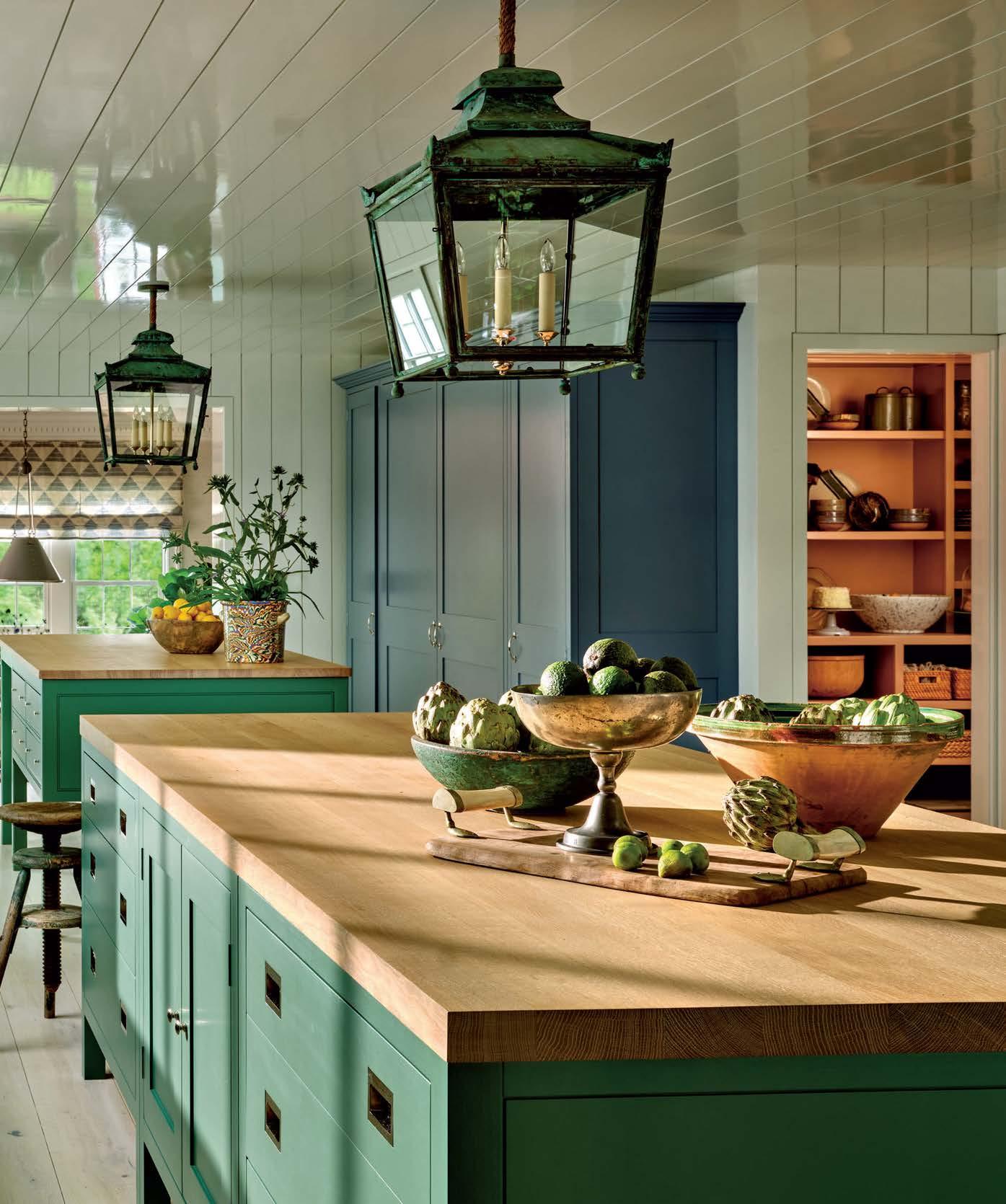 Living fixtures and finishes add even more depth. “Natural materials are most often our focus, and that’s what we used here,” the designer notes. Stone, wood and unlacquered brass—materials that will patina over time—are found throughout. “To me, a water ring, an etch or a scratch show that people are doing what they are supposed to do in a house: live,” Taylor muses. “It’s beautiful and what you would see when traveling in Europe.”