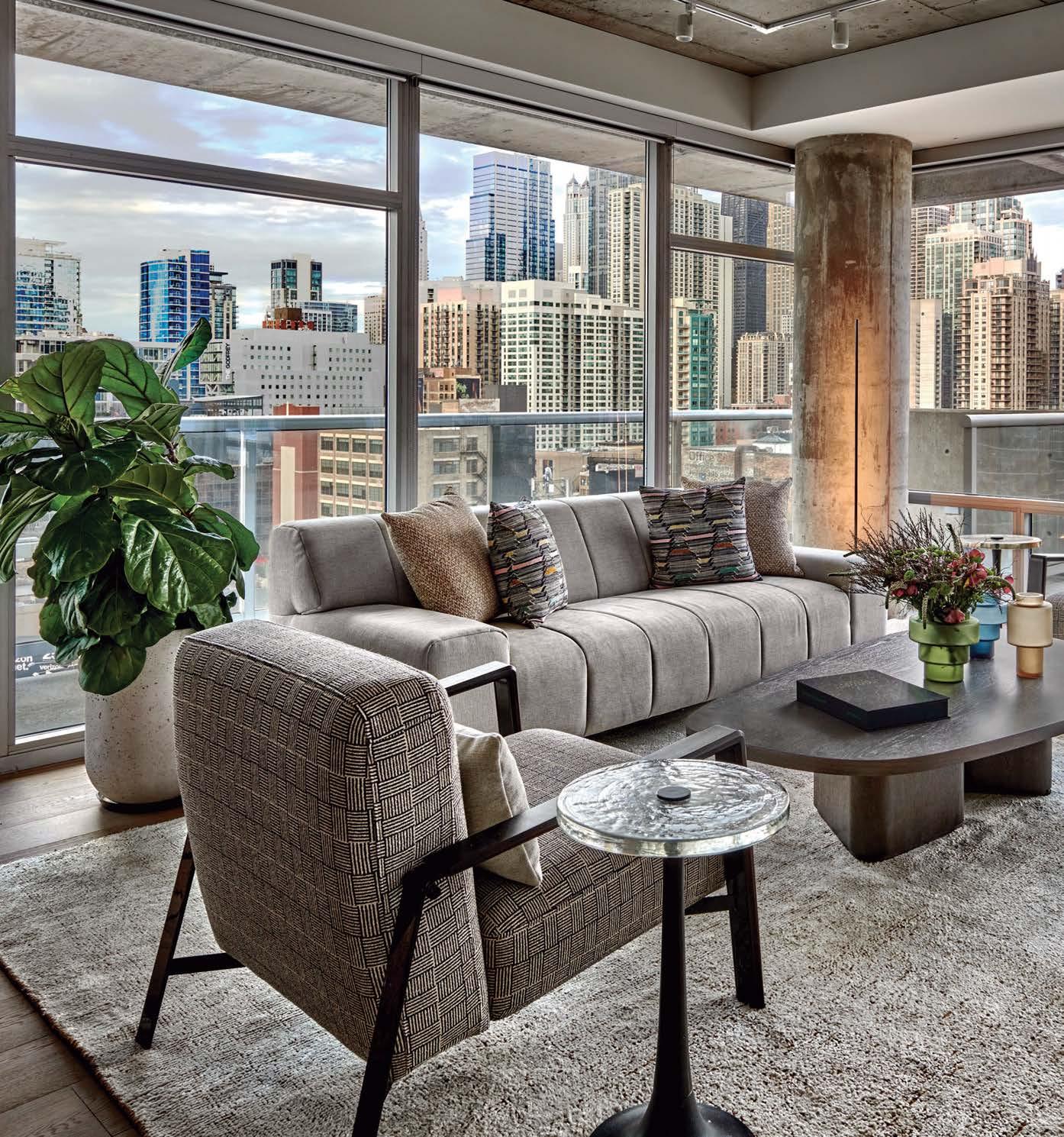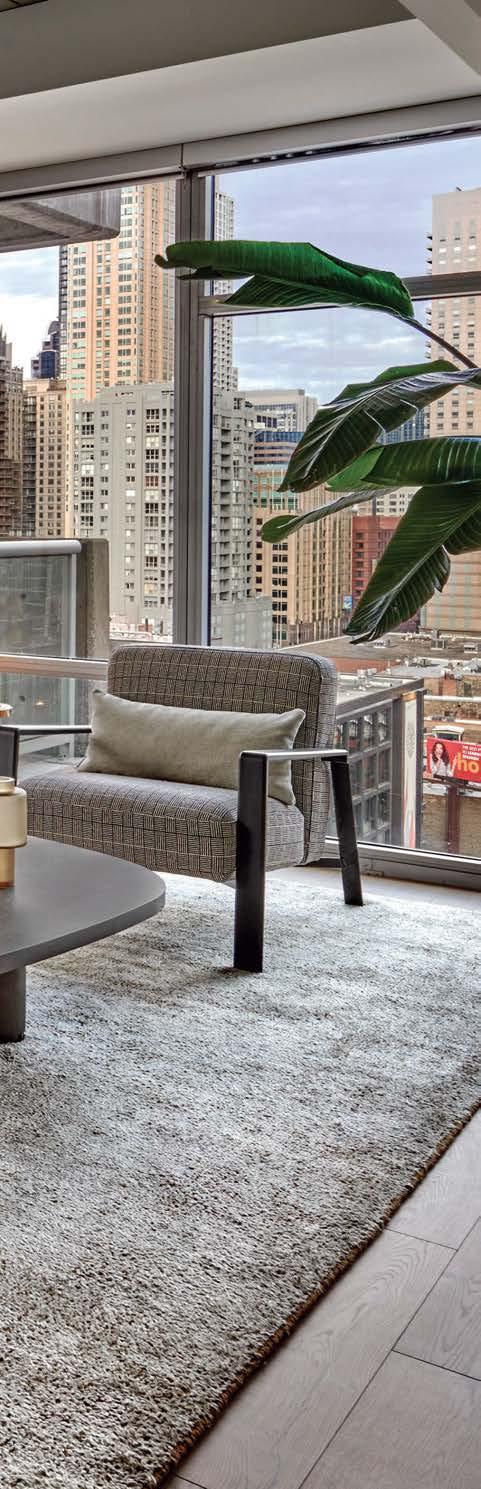 HONORING CHICAGO’S ARCHITECTURAL HISTORY, A DESIGN TEAM CRAFTS A CLEAN-LINED ABODE WHERE TEXTURED NEUTRALS CREATE A COZY ATMOSPHERE.