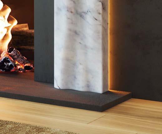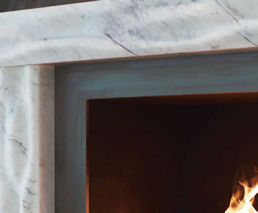 Terrazzo & Marble Supply Companies runs underneath the fireplace and window, serving as both hearth and window seat. Hanging above is a Moooi light fixture sourced from Lightology.