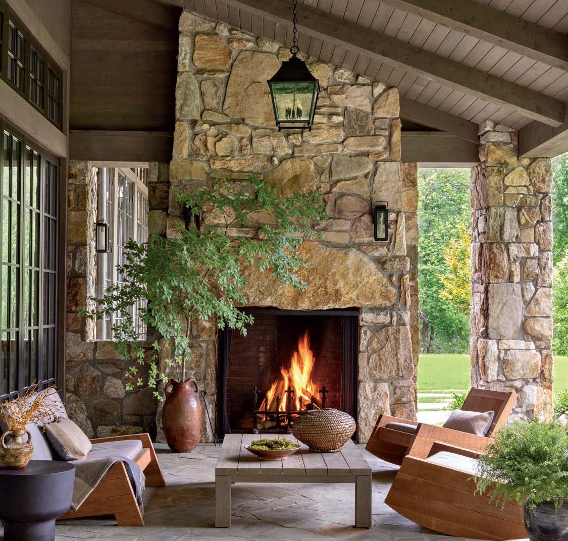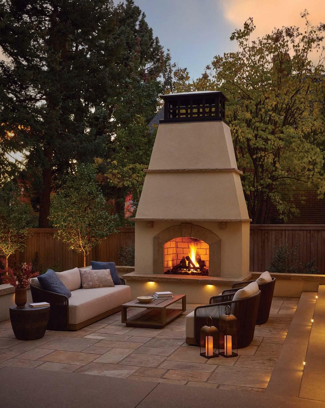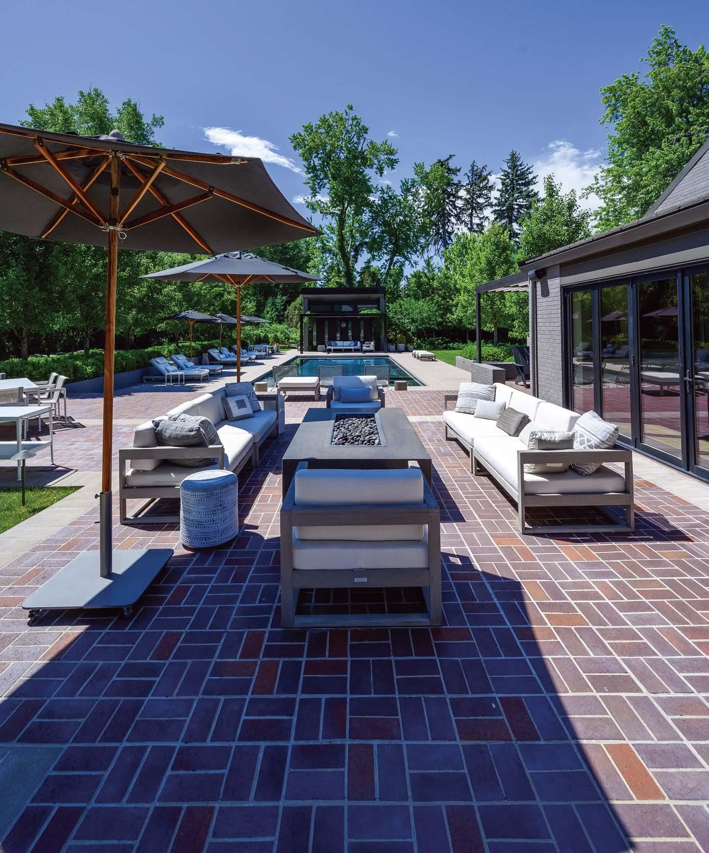 When it comes to today’s trends in outdoor design, Steinhauer says his team is seeing lots of requests for luxury upgrades to conventional cooking capabilities as well as new areas for games and play. “Outdoor kitchens are designed now to rival those of an interior kitchen—and the choices are nearly endless,” he says. “The options for outdoor appliances include griddles, pizza ovens, warming drawers, hibachi grills and much more.” Another popular request is for fire pits or fireplaces, as they are loved for their functionality in providing heat as well as their ambiance. As for games, “tennis courts, sport courts and putting greens have always been popular, and now we are also seeing m ore requests for pickleball and bocce ball courts. The most unusual recent installation was of a padel court—a racquet game that is popular in Italy.”