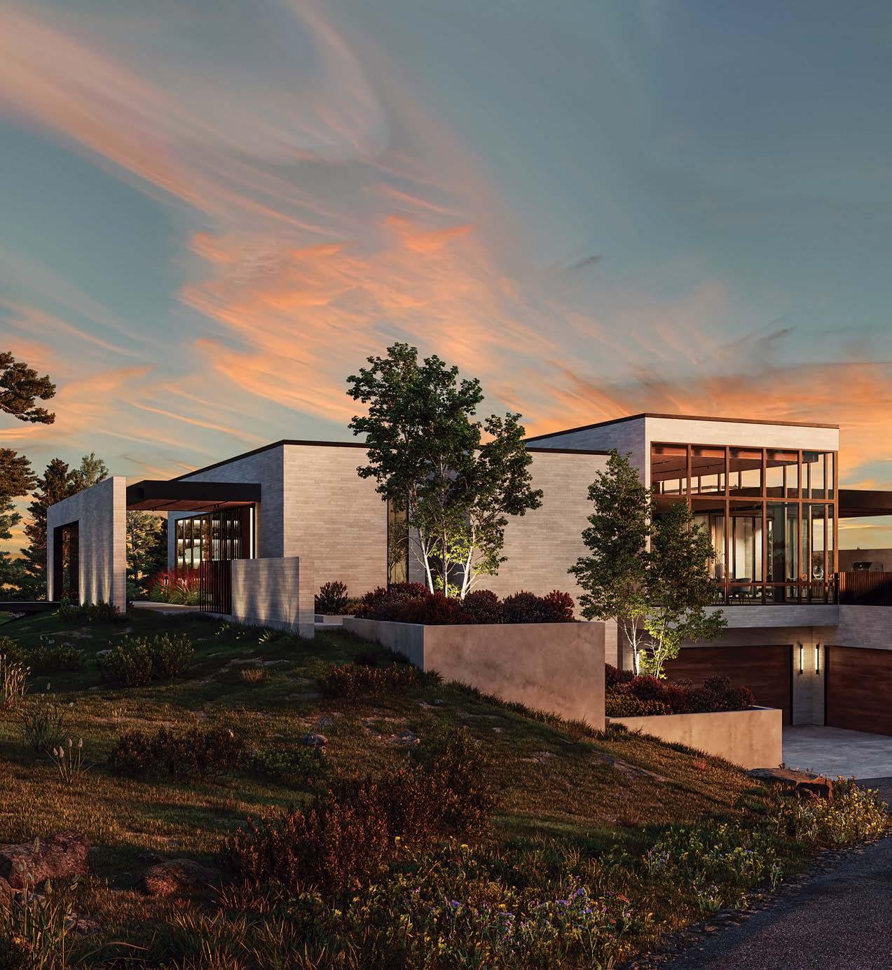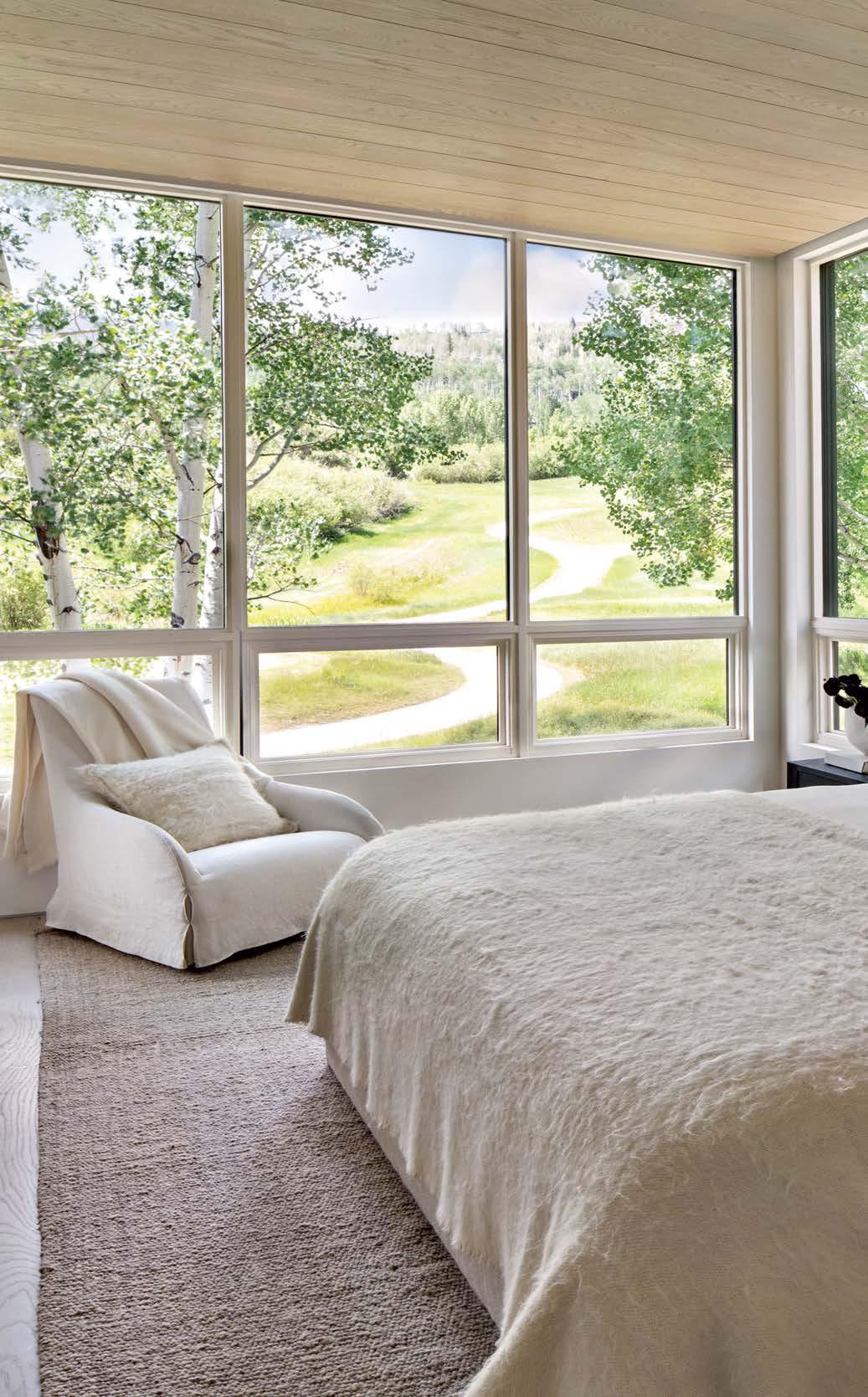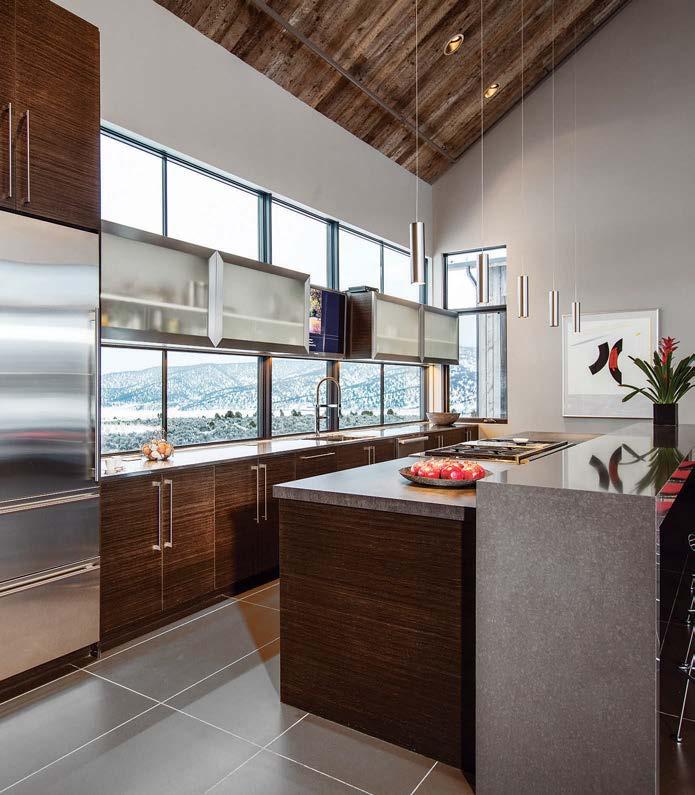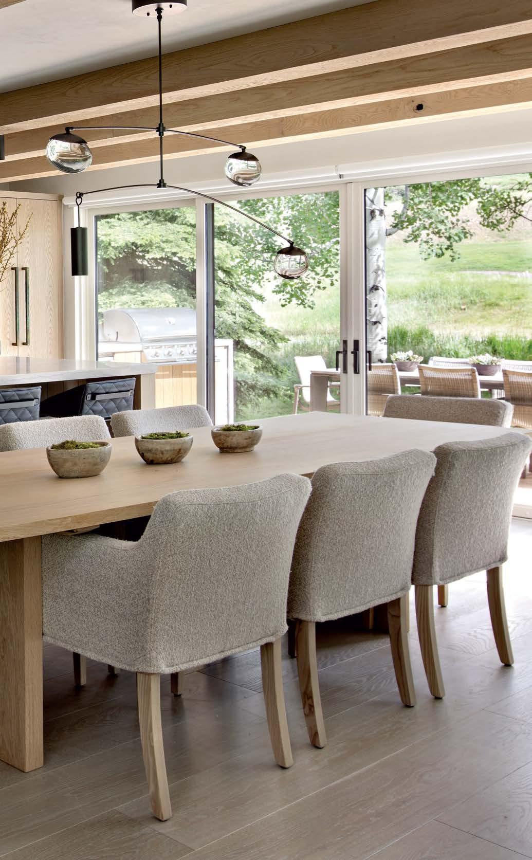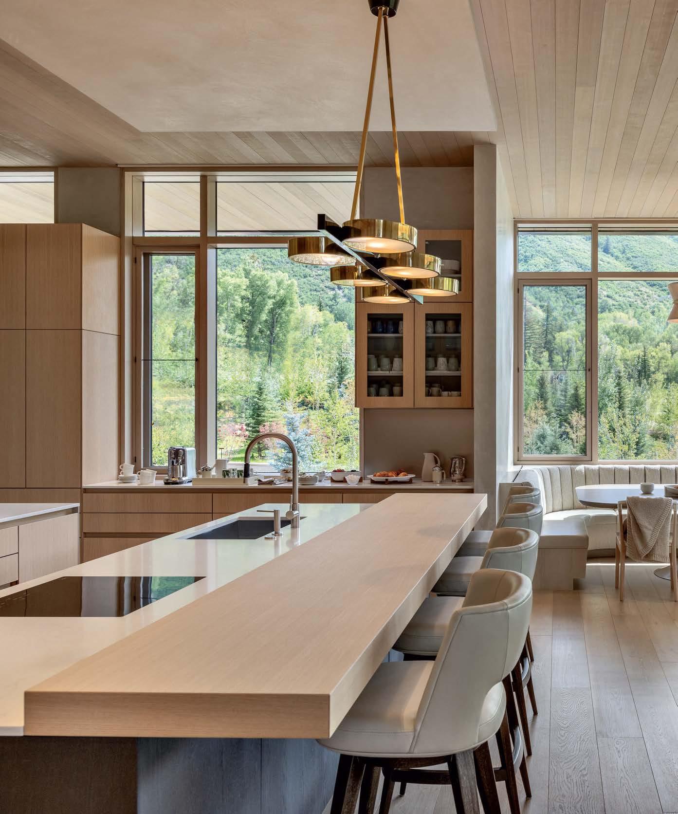 ON THE COVER: Aspen Mountain views are framed by the great room’s wall of glass, courtesy of Quantum Windows & Doors, in a multigenerational getaway designed by architect Charles Cunniffe alongside project manager Erica Delak and interior designer Courtney Nystrom. Club chairs, a set of sofas and an accent chair and ottoman, all A.Rudin, provide ample seating around Holly Hunt tables. A Hubbardton Forge pendant stars as the space’s exclamation point. Page 162
