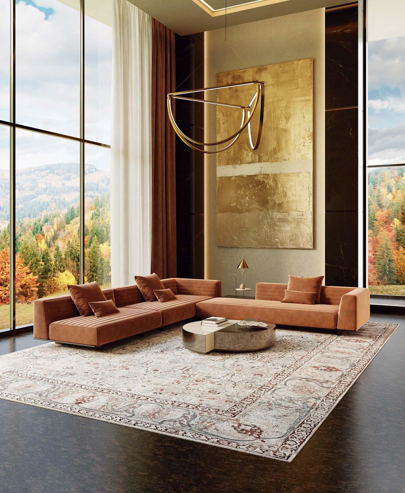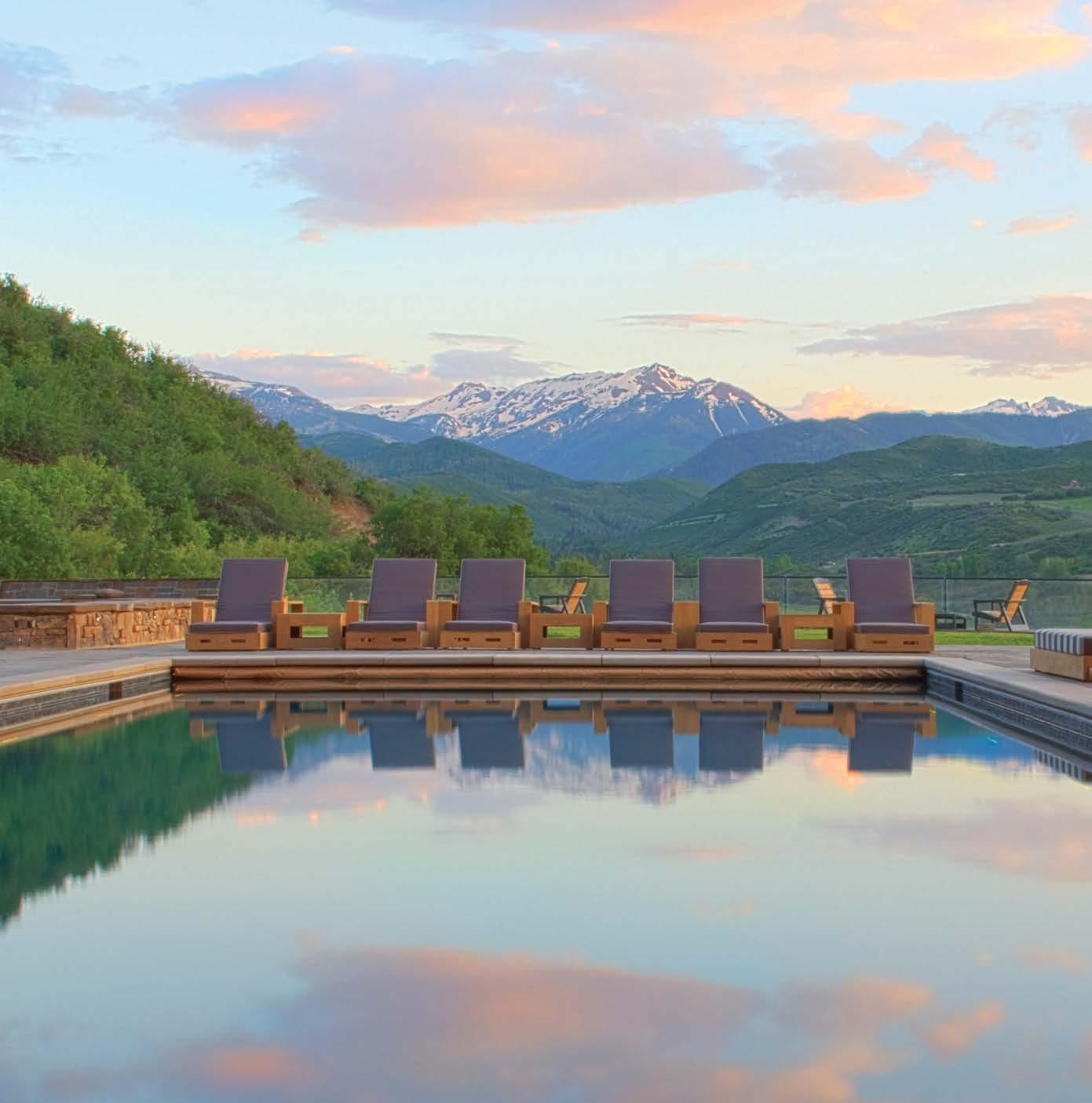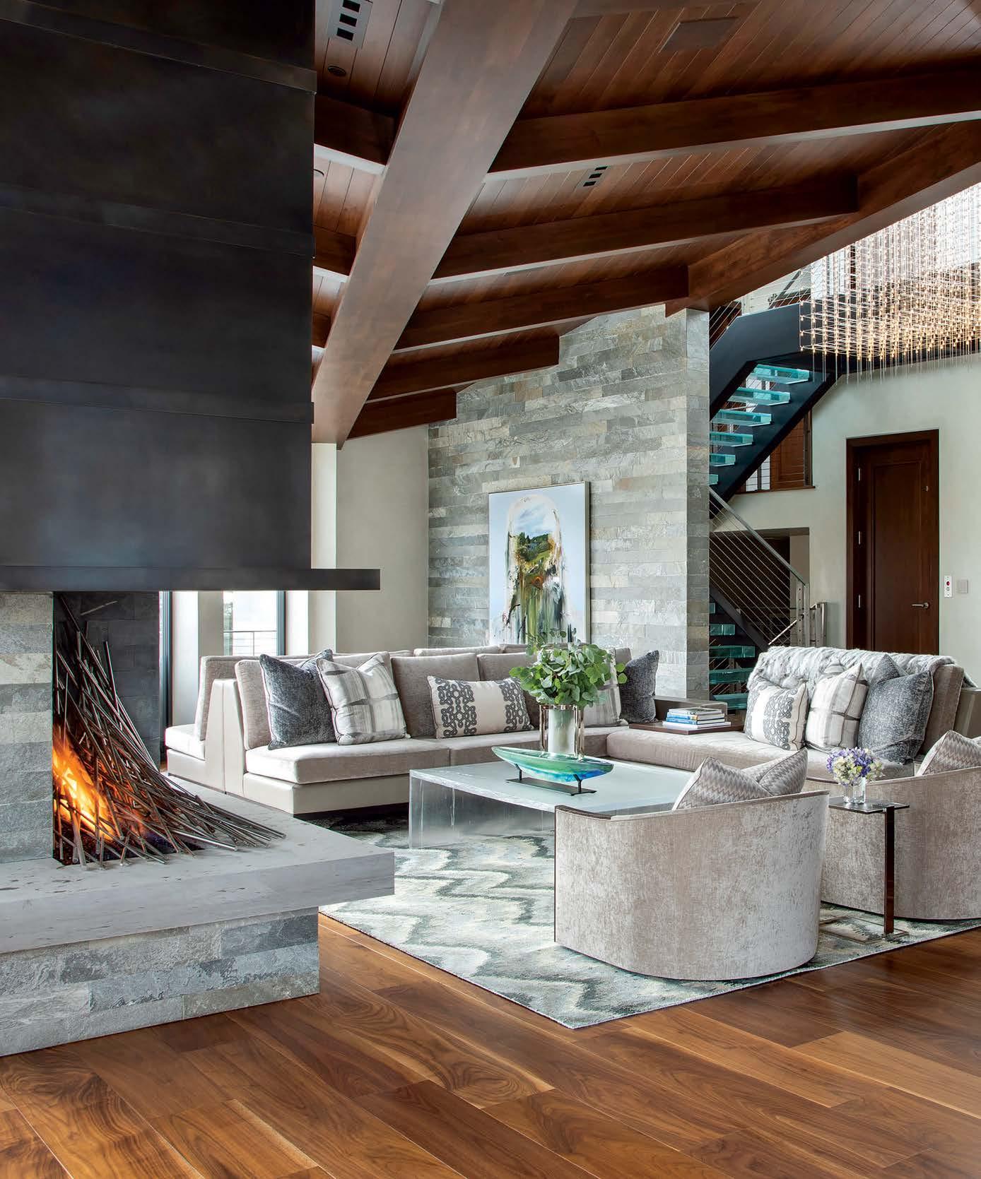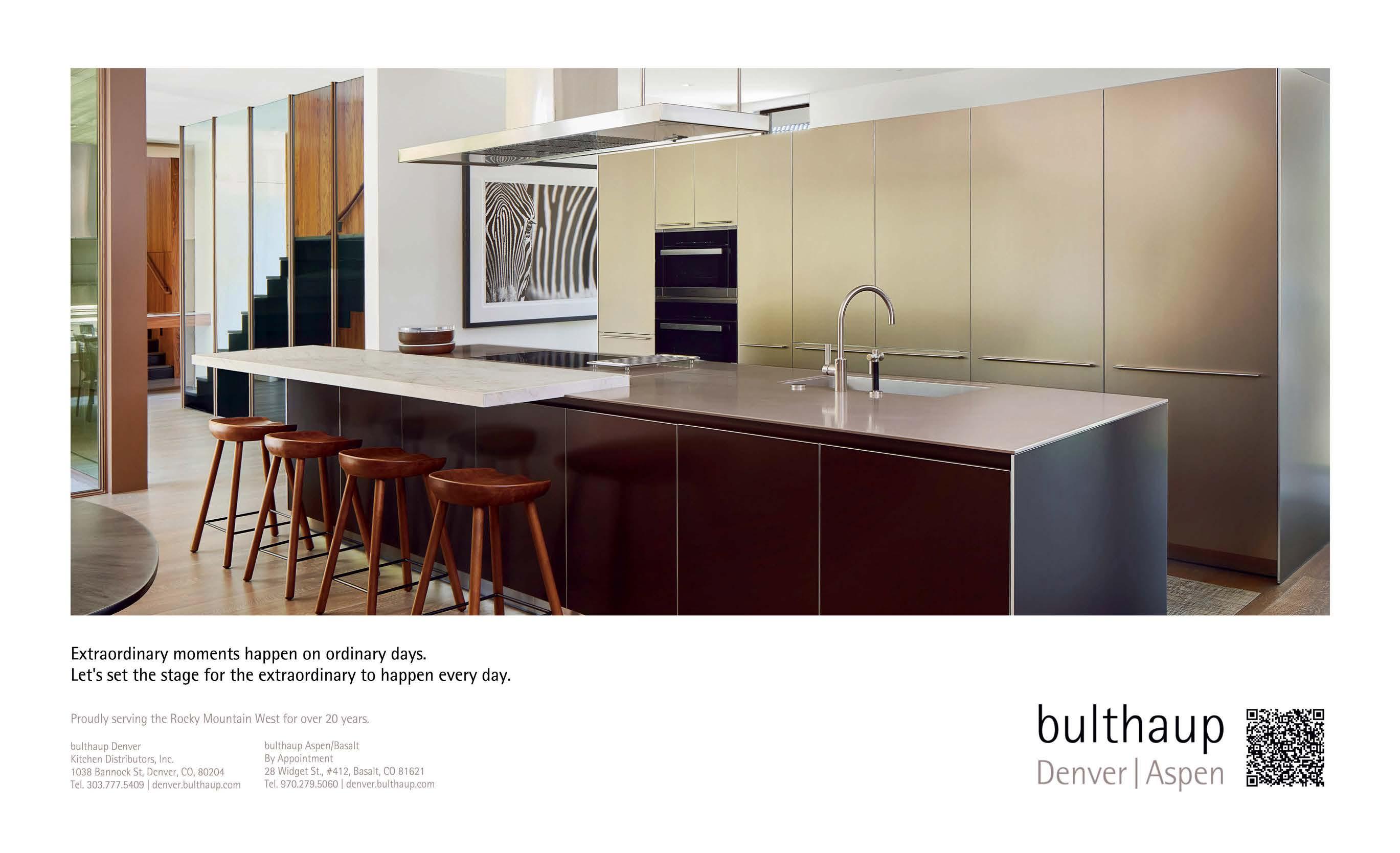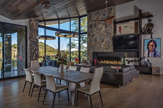 ON THE COVER: Aspen Mountain views are framed by the great room’s wall of glass, courtesy of Quantum Windows & Doors, in a multigenerational getaway designed by architect Charles Cunniffe alongside project manager Erica Delak and interior designer Courtney Nystrom. Club chairs, a set of sofas and an accent chair and ottoman, all A.Rudin, provide ample seating around Holly Hunt tables. A Hubbardton Forge pendant stars as the space’s exclamation point. Page 162