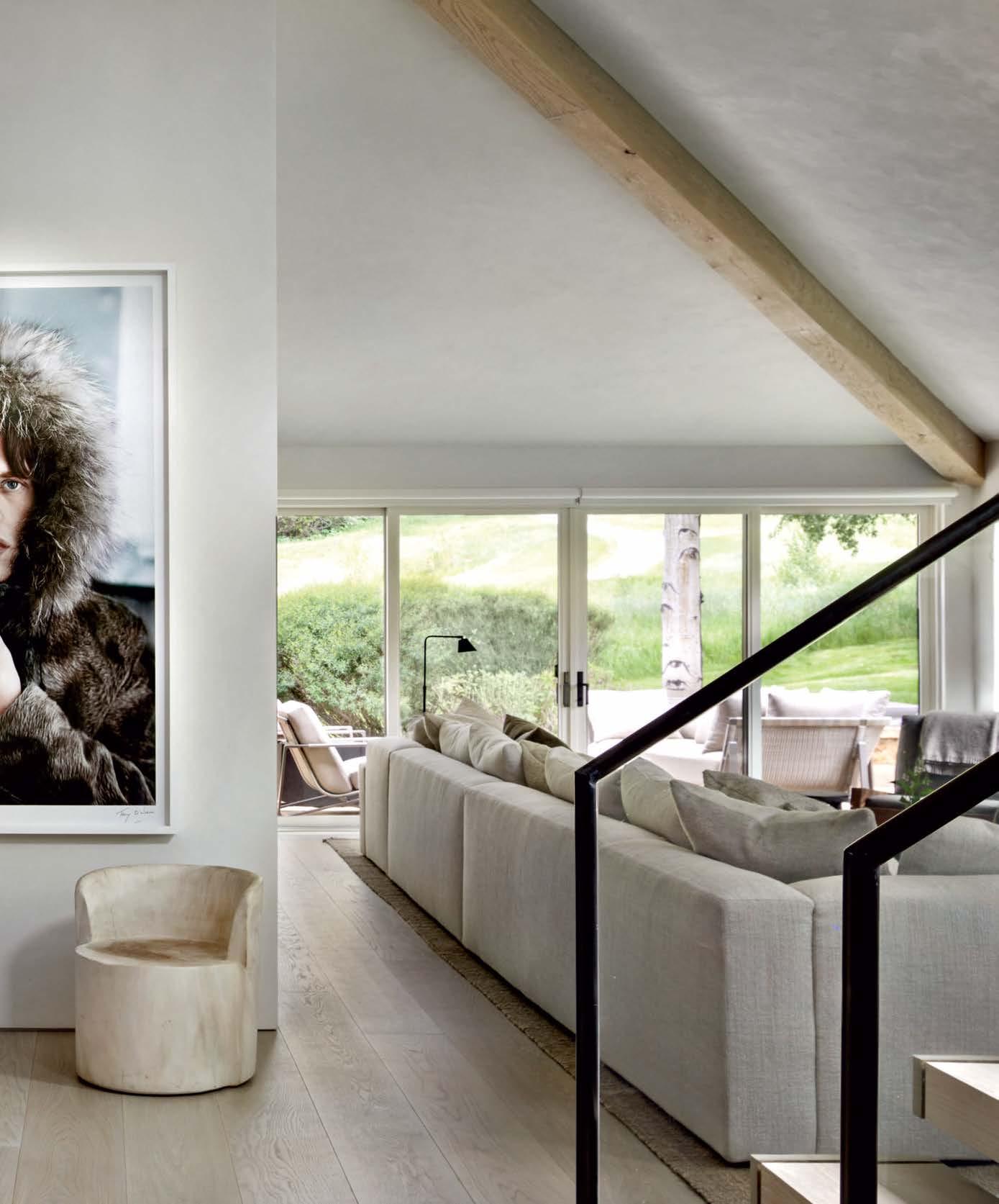 The refined retreat is the result of a close client-designer collaboration. When owner Wende Cohen first glimpsed it, the interiors begged for a refresh (picture a plethora of knotty pine and wall-to-wall carpeting). The designminded tastemaker, who owns Bungalow, a home goods boutique known for its furnishings and art, was uniquely poised to see its potential. Wende imagined the dwelling opened up and stripped back to its essence with a nuanced, neutral palette, but she needed help realizing this vision. “I work with interior designers all the time, but I’m not one myself,” she says. “I needed someone to come in from an engineering standpoint and tell me what we could do.” Hoping to host all six adult children in her blended family at the house during holidays, Wende’s punch list included as many bedrooms with en suite bathrooms as she could fit, an office for her fiancé and an open kitchen with a dining table to seat at least 14.
