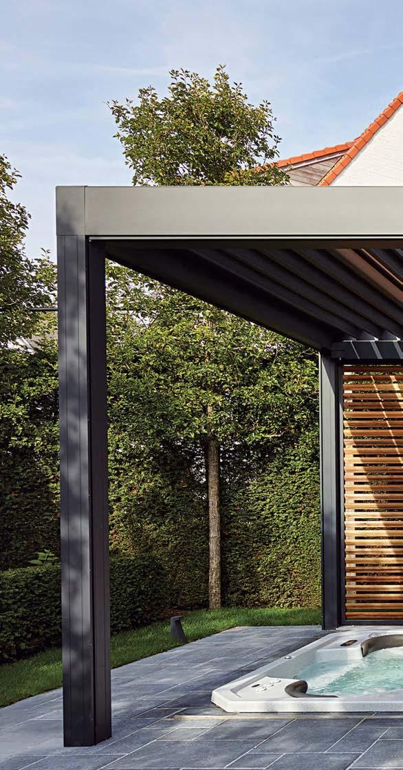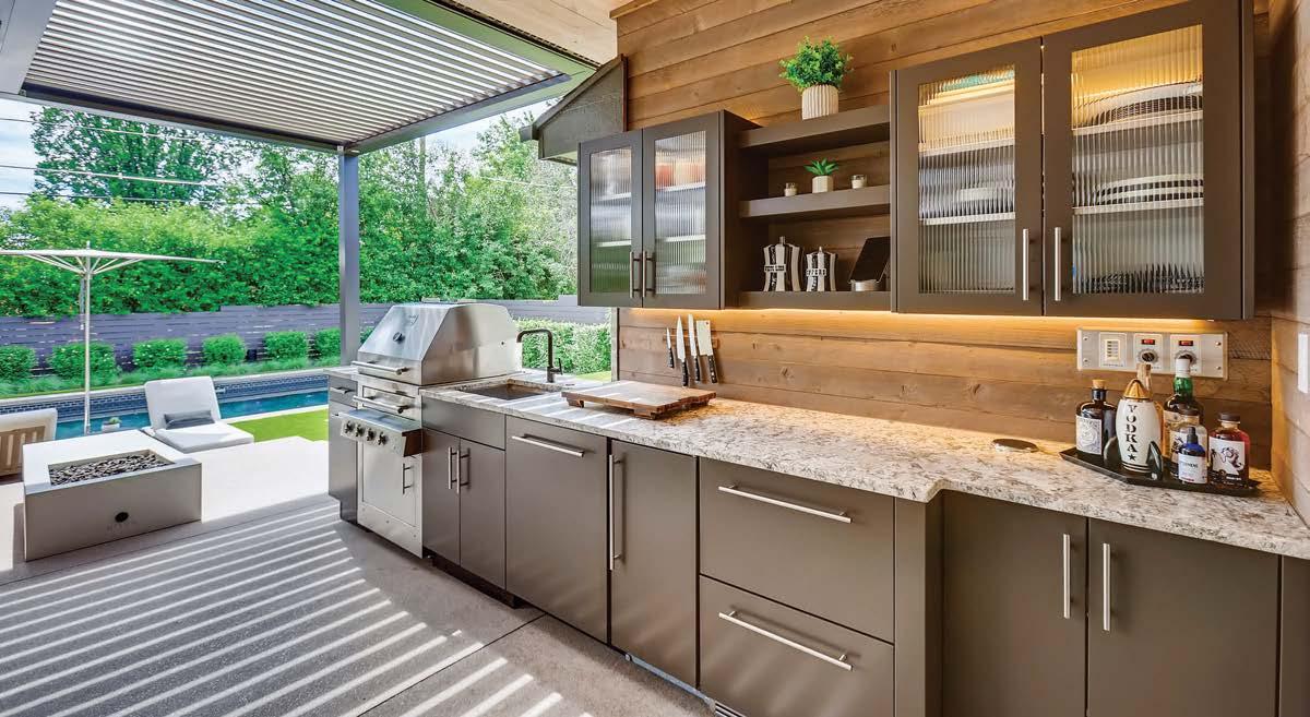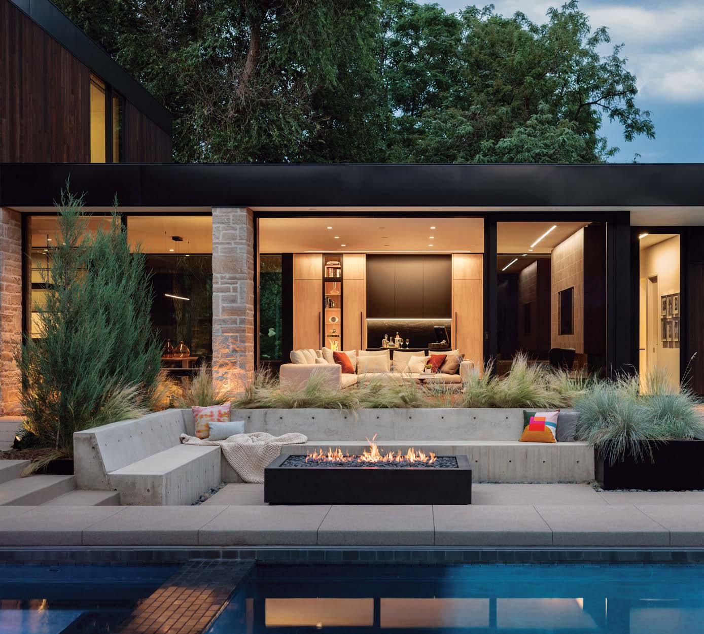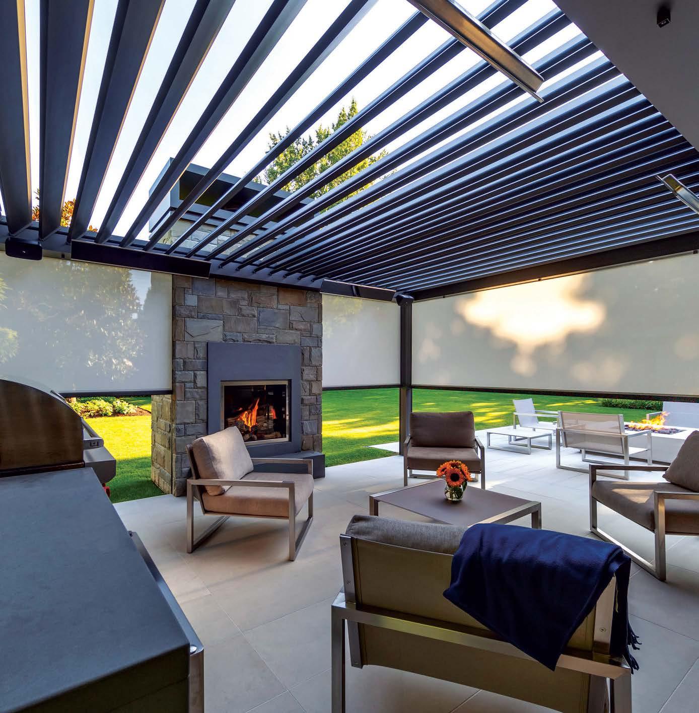 The team is proud of how they have incorporated cutting-edge technology to create “smart, intuitive indoor-outdoor spaces.” Deemer explains, “Automated lighting systems, temperature-controlled water features and motorized louvered roofs provide effortless functionality and comfort. Smart irrigation systems ensure optimal water usage, while outdoor audio and visual systems offer easy entertainment. Technology also plays a role in long-term sustainability, with features like app-controlled climate systems and energyefficient designs that reduce environmental impact while enhancing convenience and usability for our clients.”