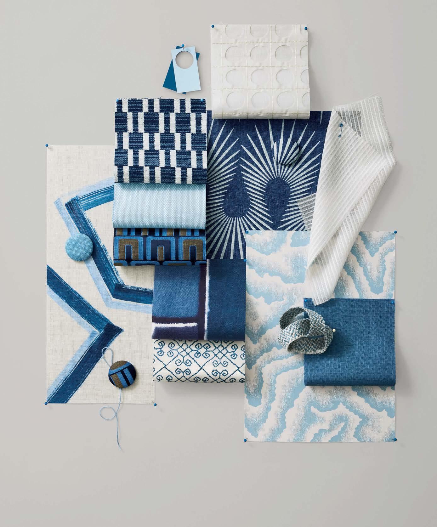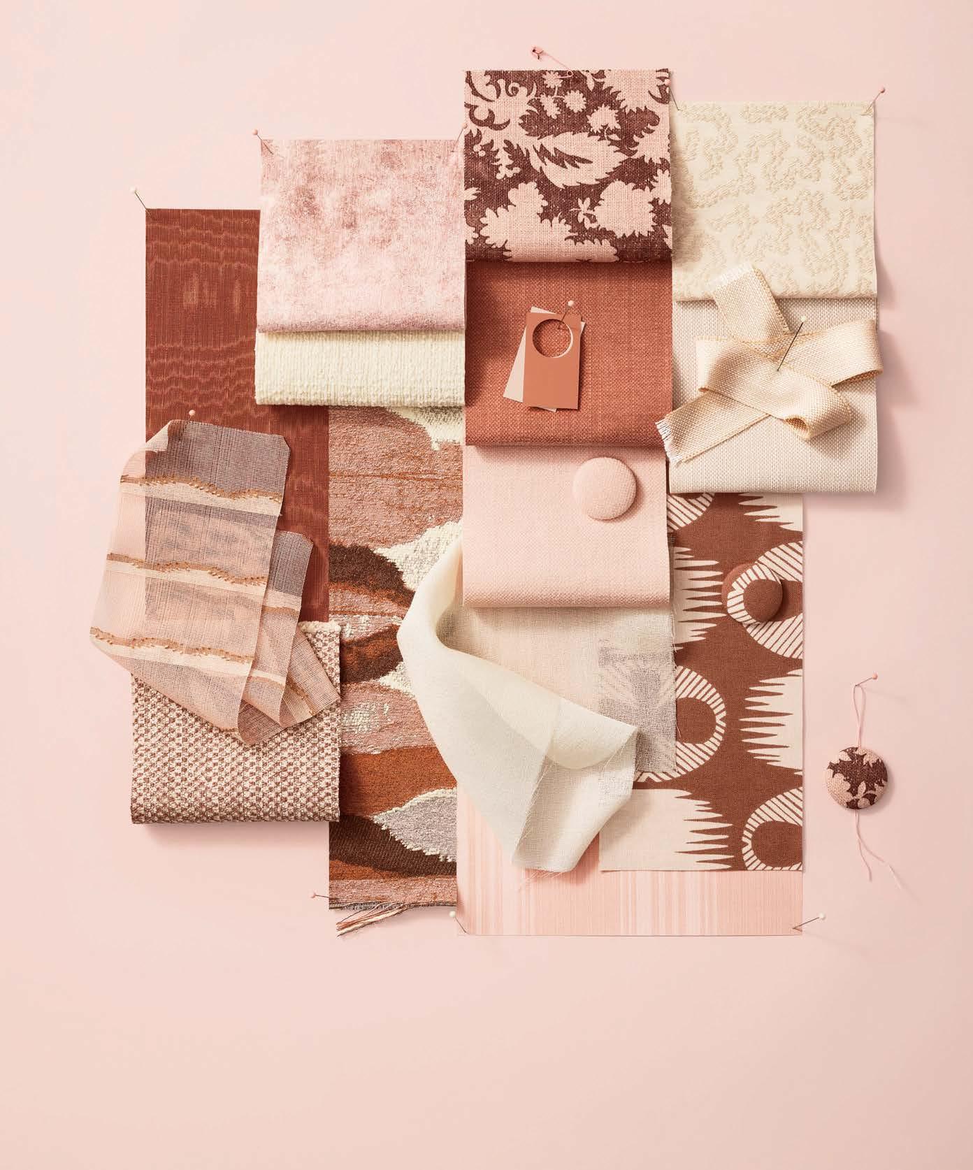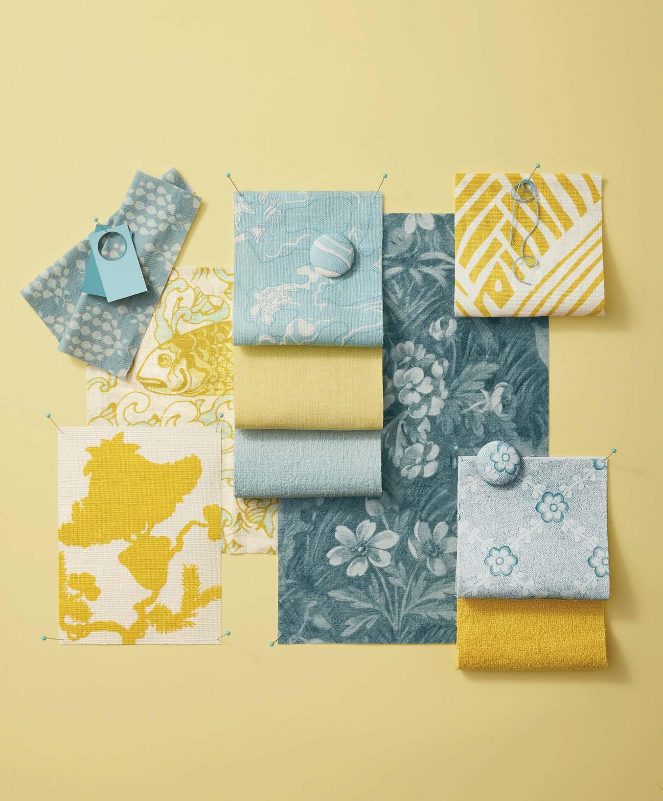 Discover spring’s new fabrics and wallpapers showcased within three distinct color combinations.