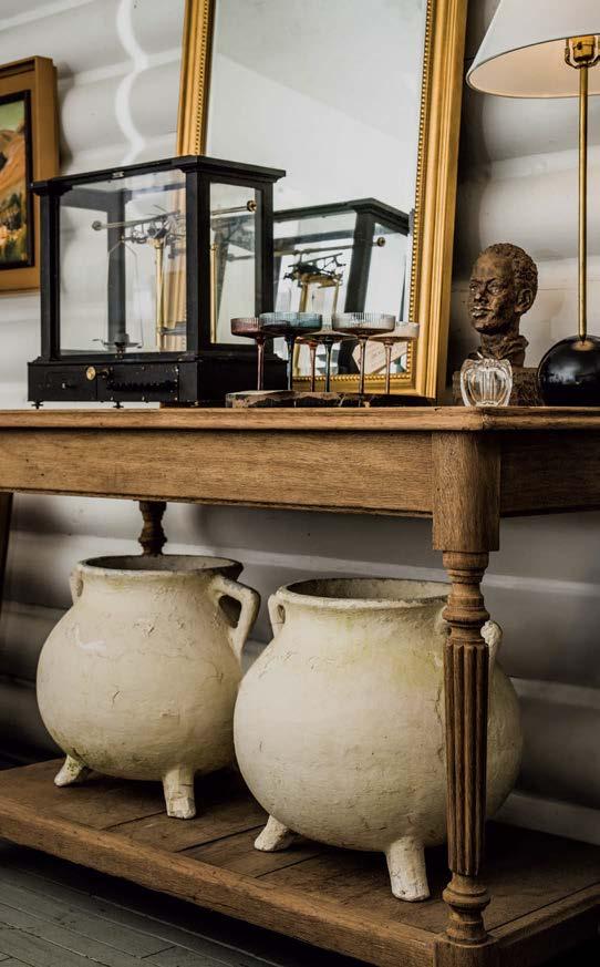 The challenge: Bringing an airy disposition to the room’s dark, patrician architecture. “By adding a large picture window over the sink, gallons of high-gloss white paint on tongueand-groove siding, and window screens to enclose the bar, the space became breathable,” he explains. And oh, what a bar it is.