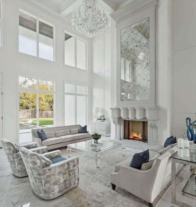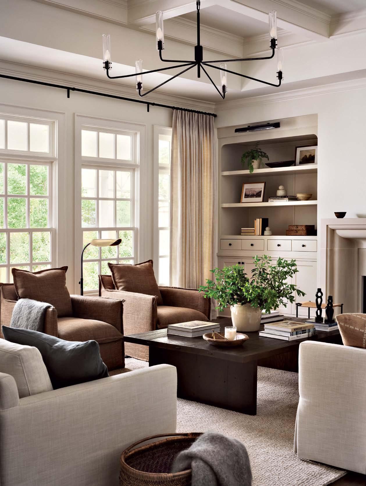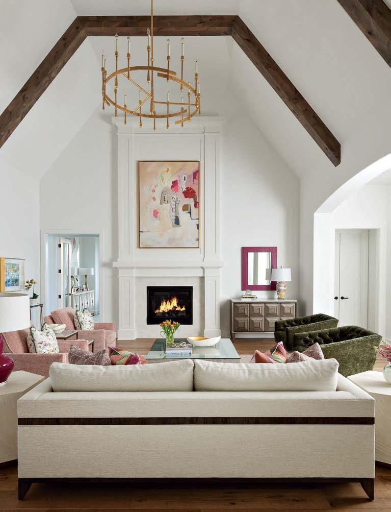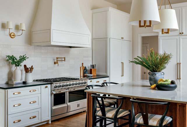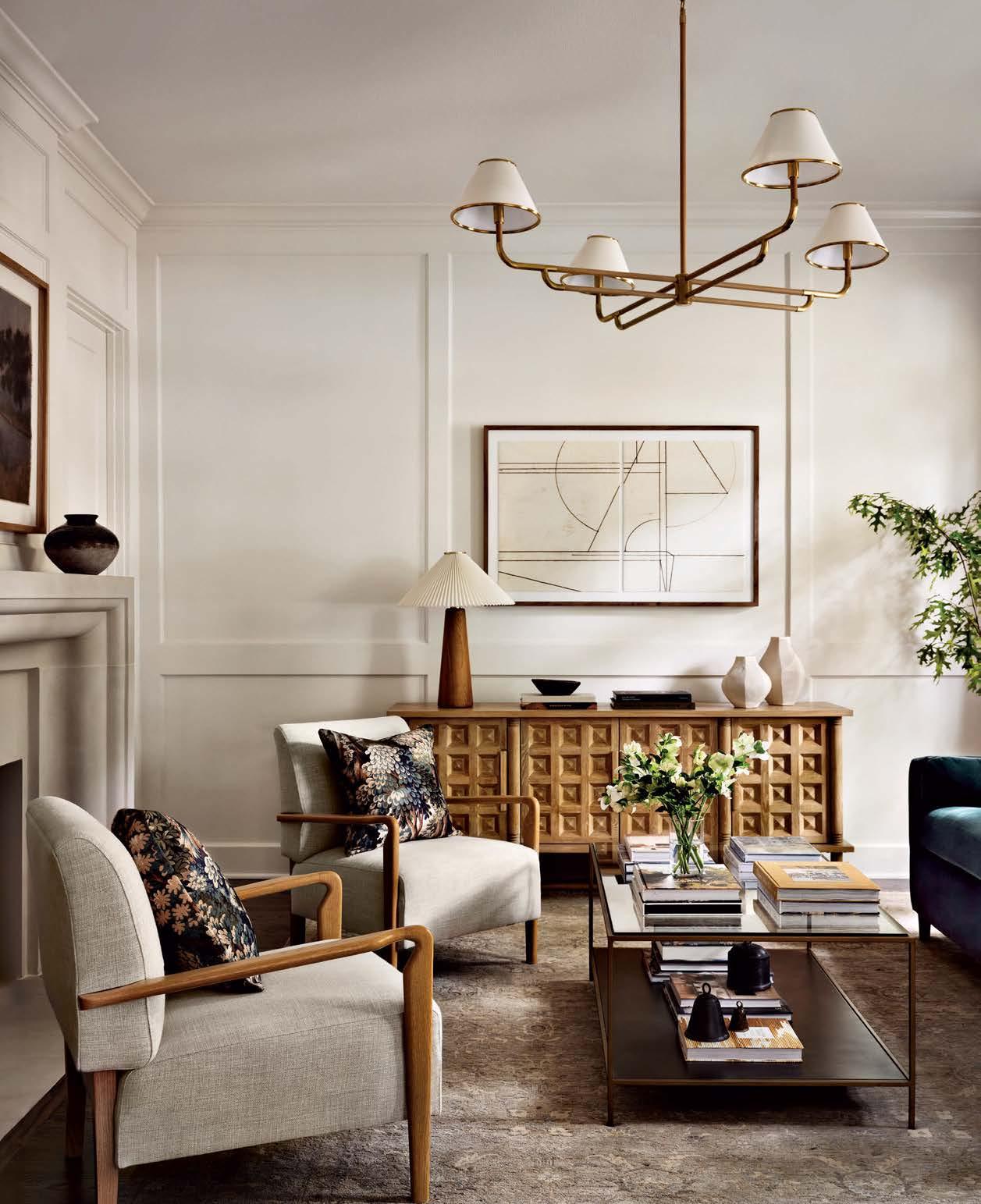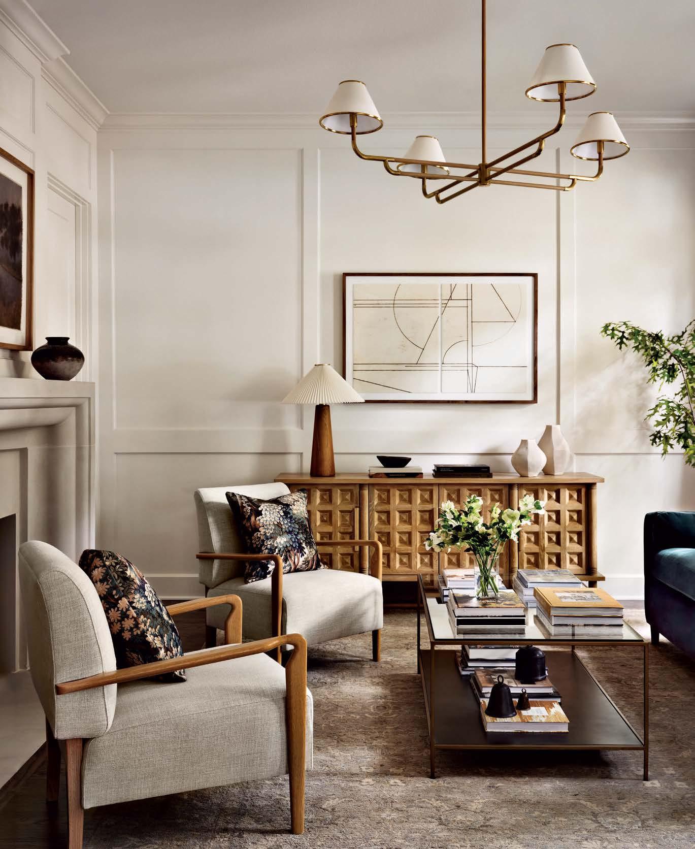 ON THE COVER: In Dallas, interior designer Mary Beth Christopher worked with Robert Elliott Custom Homes to renew a Georgian-style abode. The formal sitting room, crowned by a Marie Flanigan chandelier for Visual Comfort & Co., features custom wood paneling swathed in Benjamin Moore’s Swiss Coffee and a pair of armchairs from Lawson-Fenning. Page 154