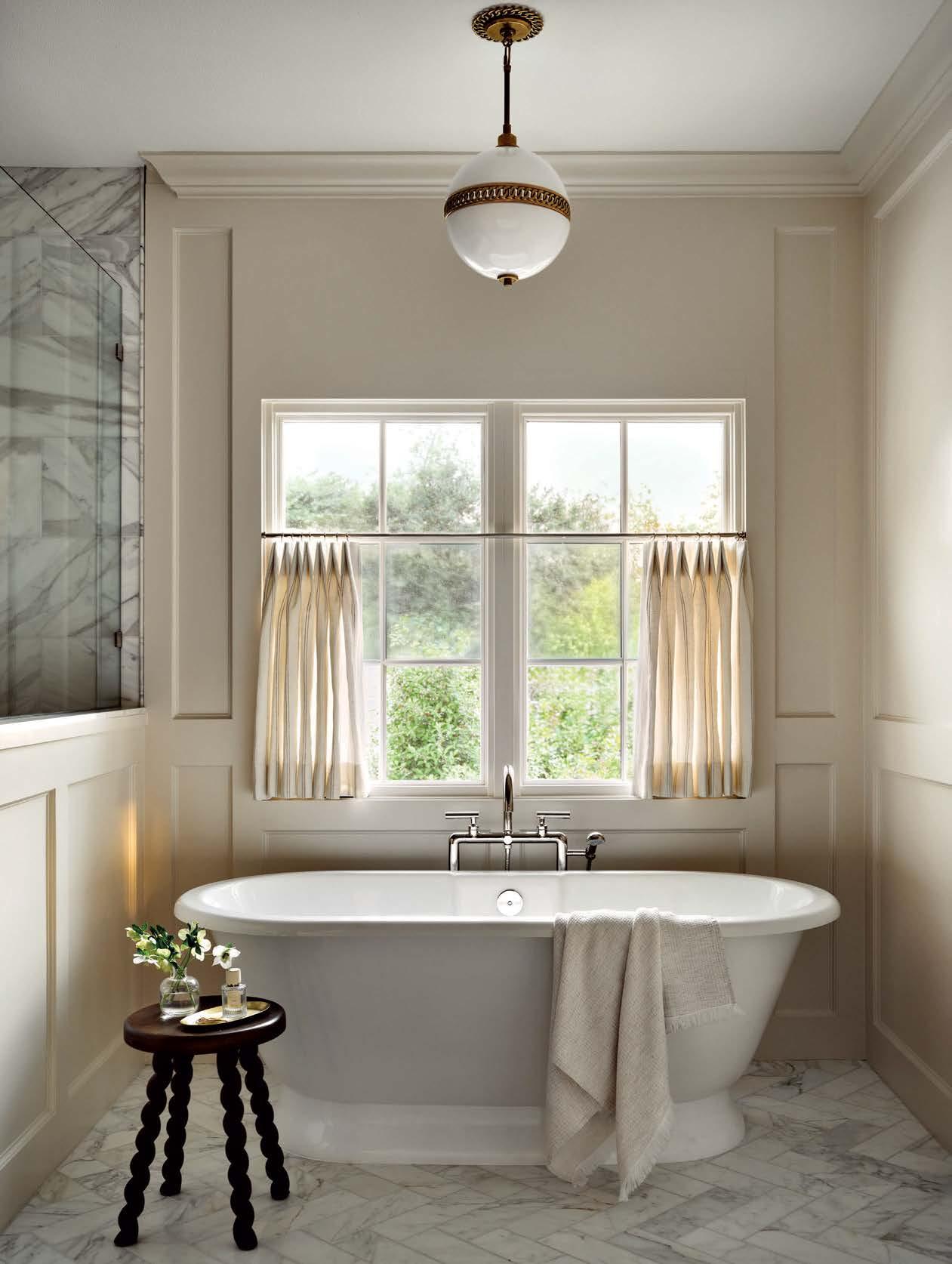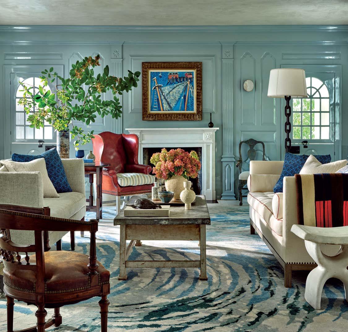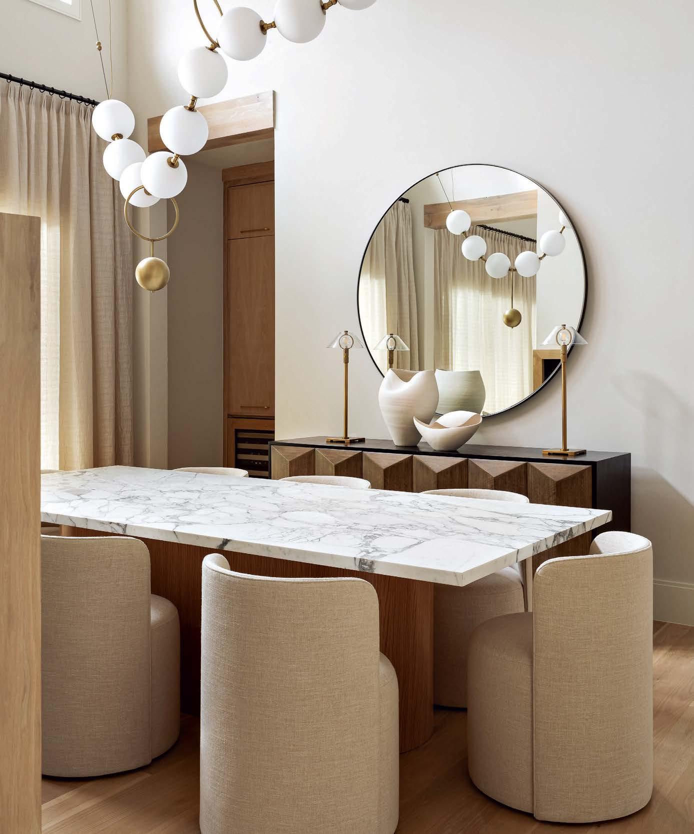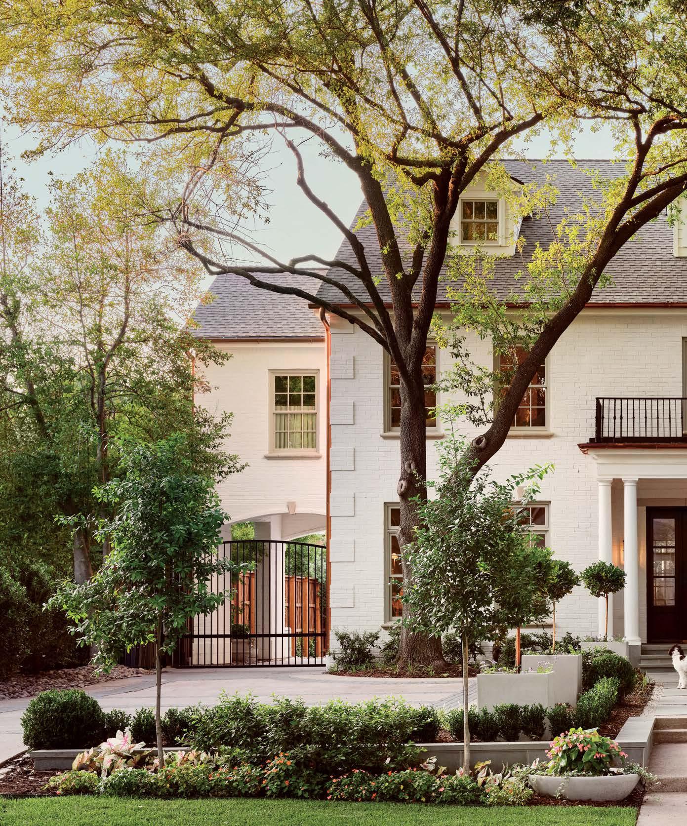 ON THE COVER: In Dallas, interior designer Mary Beth Christopher worked with Robert Elliott Custom Homes to renew a Georgian-style abode. The formal sitting room, crowned by a Marie Flanigan chandelier for Visual Comfort & Co., features custom wood paneling swathed in Benjamin Moore’s Swiss Coffee and a pair of armchairs from Lawson-Fenning. Page 154