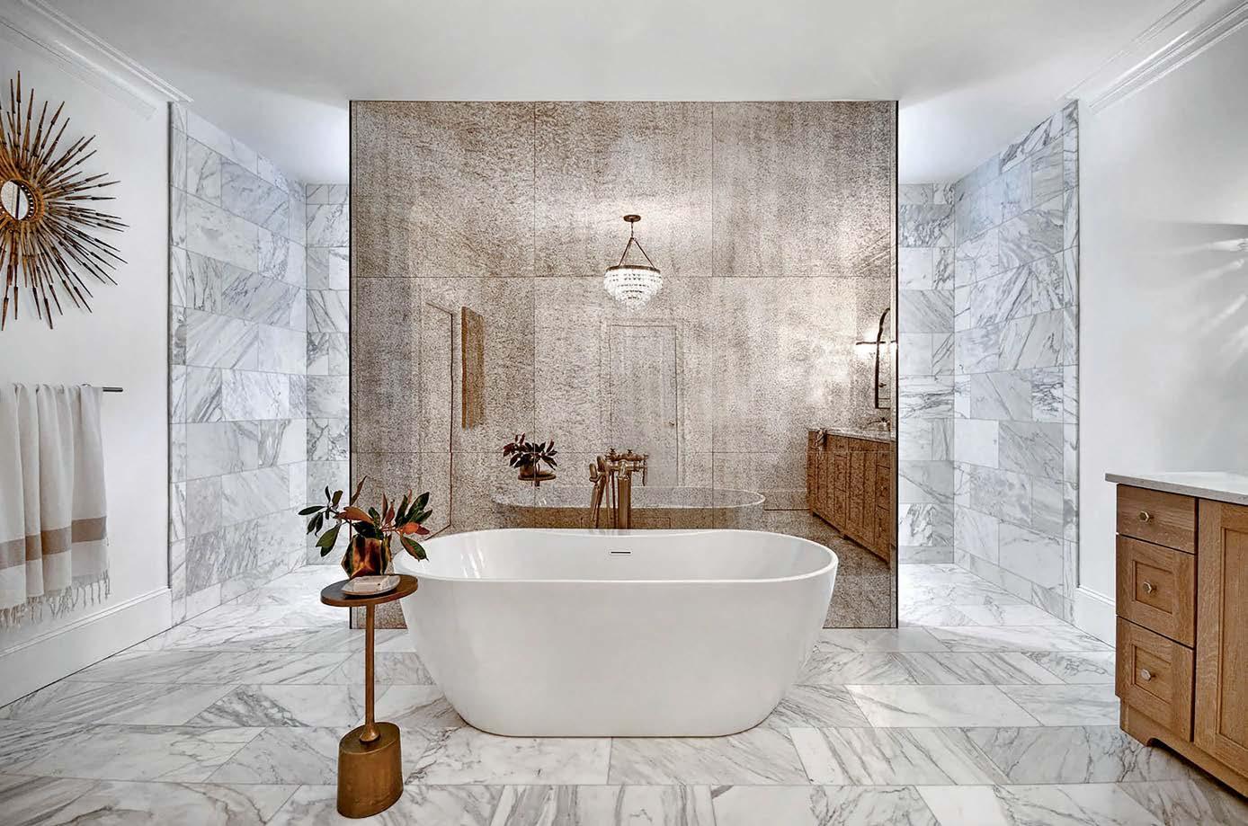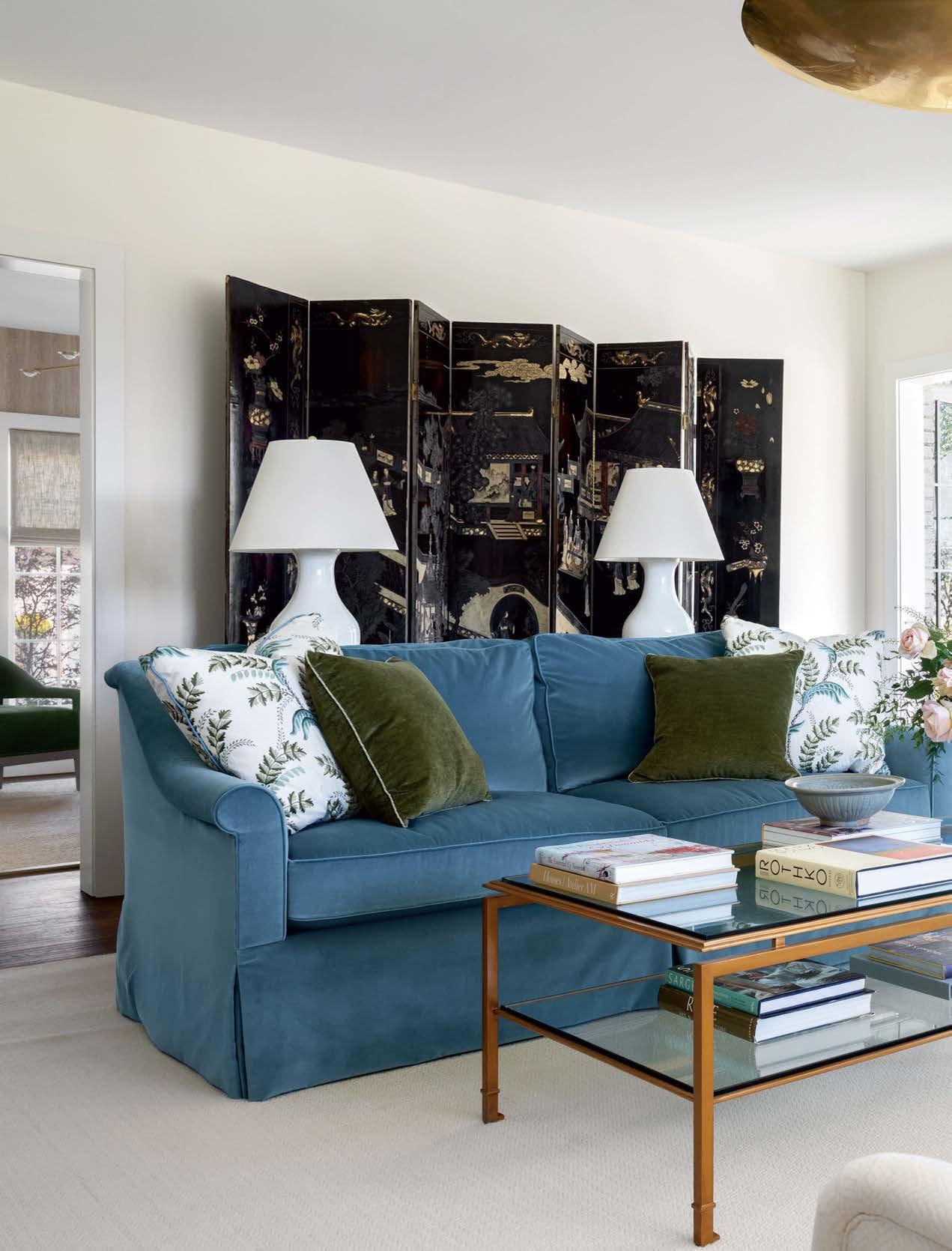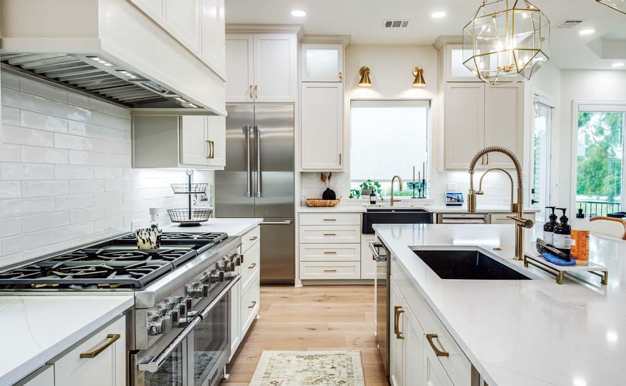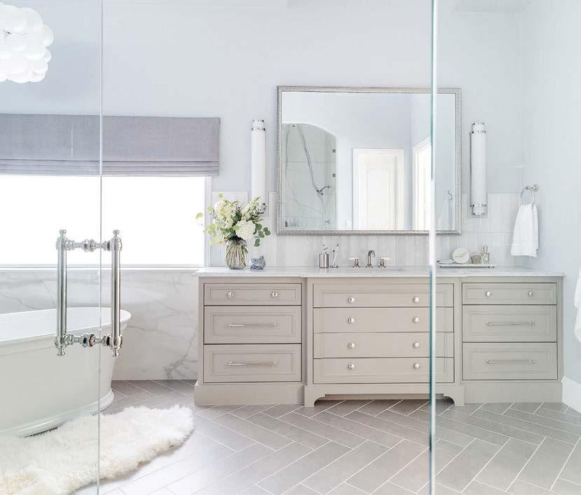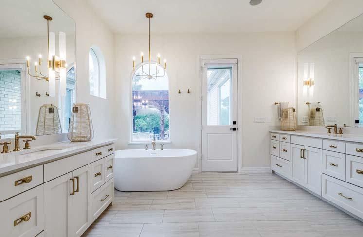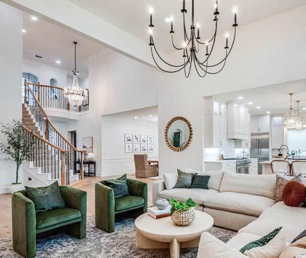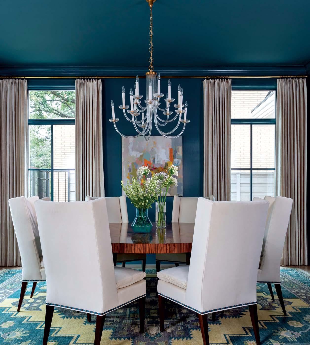 ON THE COVER: In Dallas, interior designer Mary Beth Christopher worked with Robert Elliott Custom Homes to renew a Georgian-style abode. The formal sitting room, crowned by a Marie Flanigan chandelier for Visual Comfort & Co., features custom wood paneling swathed in Benjamin Moore’s Swiss Coffee and a pair of armchairs from Lawson-Fenning. Page 154