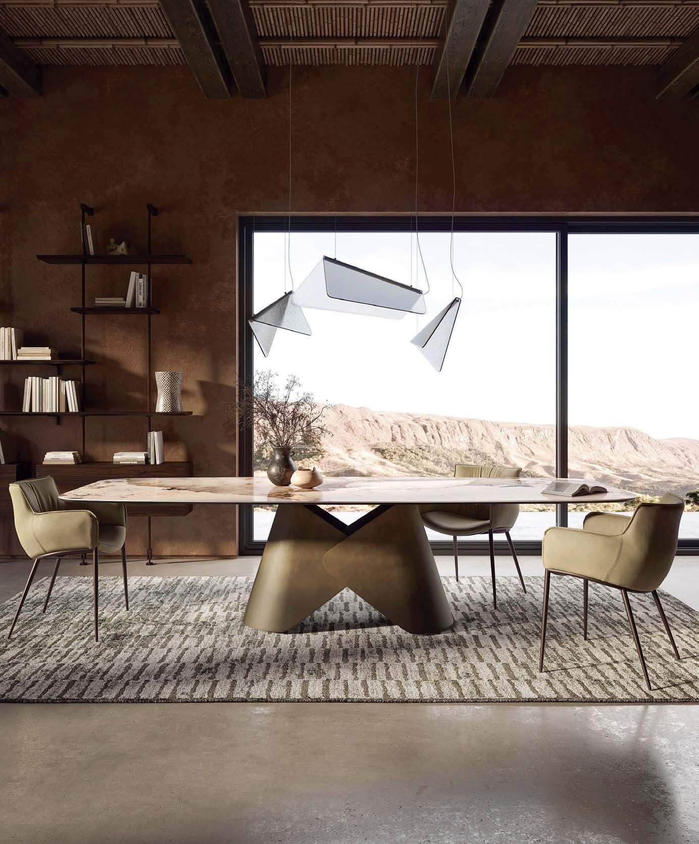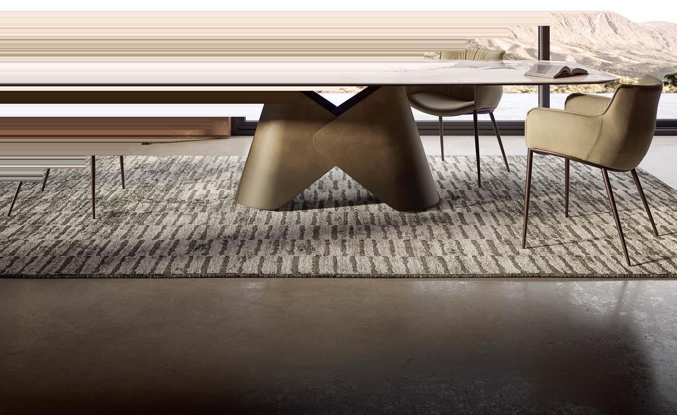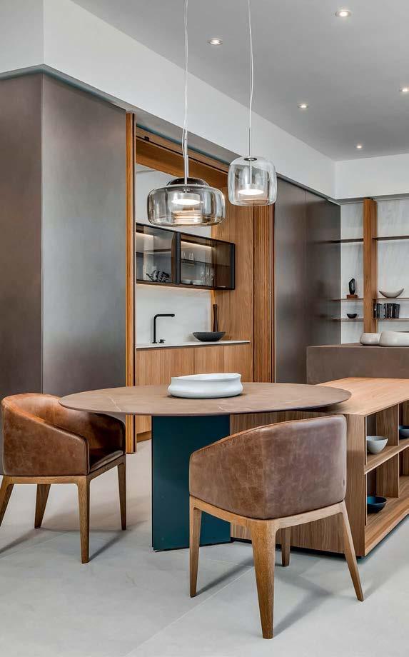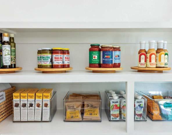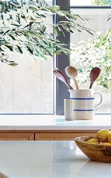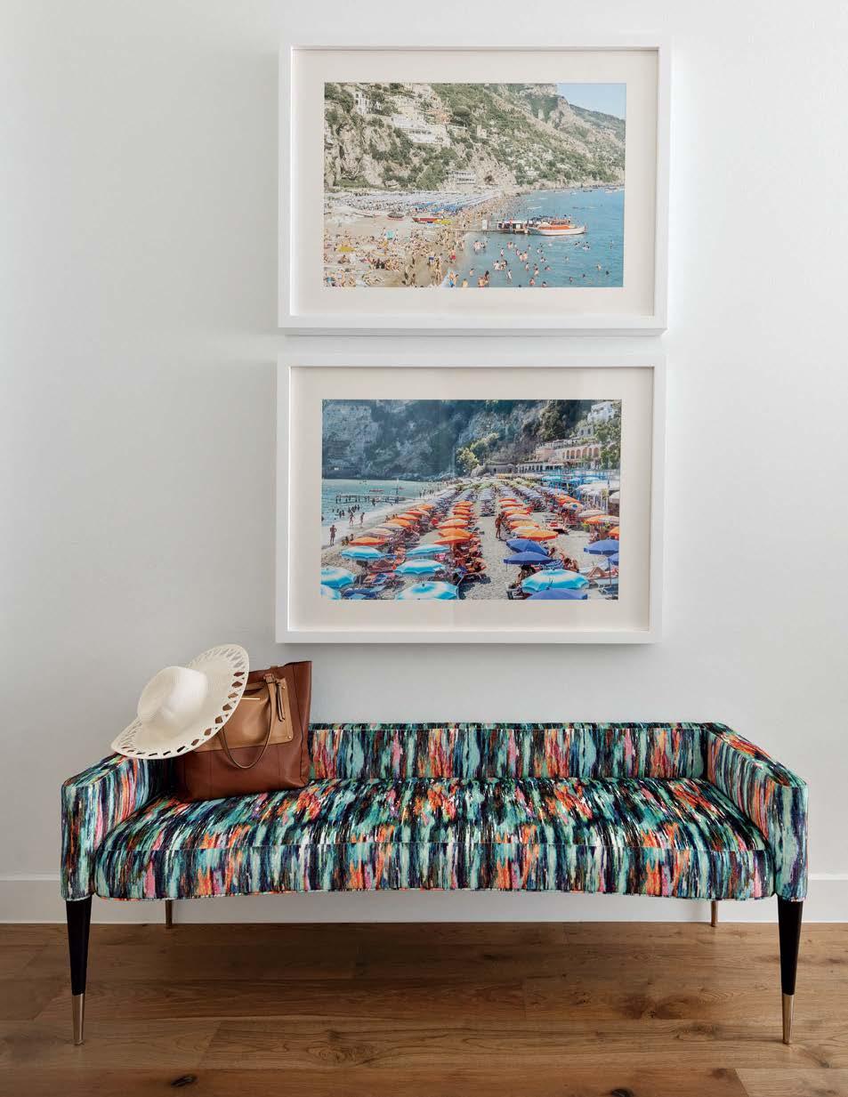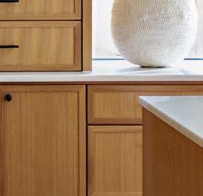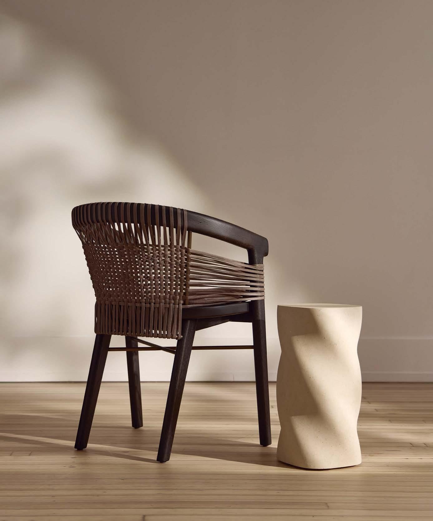 that mitigate light while adding privacy. Tucker also focused on an earthy palette and textural fabrics like the slub linen used on the living room’s multisided sofa, a design chosen to elicit easy conversation with anyone in the kitchen and living space as well as engage with the pool area outside. “We didn’t want the traditional sofa-andchairs setup because this couple often cooks and entertains by the pool,” the designer elaborates. “More conventional furnishings would have been too static in this space.”