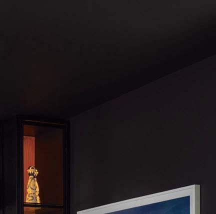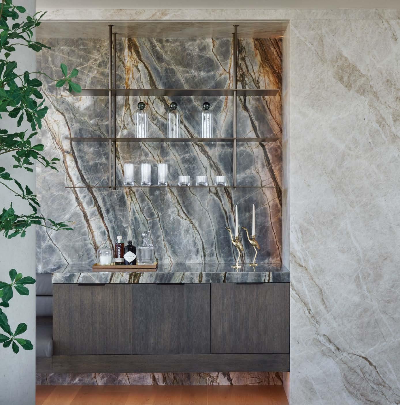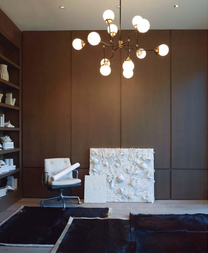 With cues from the architecture, interior designer Ann Tucker applied an equally considered strategy to furnishing the rooms. “We worked to highlight the owners’ personalities and add material nuance to the project,” she re ects. To do so, she brought in subtle draperies