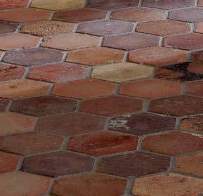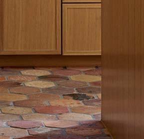 For the office’s ceiling, the designer conceived a labyrinth of millwork inspired by a beloved Aboriginal artwork the couple collected during their honeymoon in Australia. They also gravitated toward reclaimed French terra-cotta tiles for much of the flooring, which are similar to those Robert recalled from his own childhood home. “I remember coming in from the pool and not having to worry about leaving wet footprints,” he reminisces. They imagined the sturdy material would recreate the same carefree joy for their future brood.