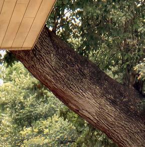 “Designing this home within the trees was a powerful experience,” says architect Megan Lin, who worked with her architecture partner and husband, Frank, on the project. Because they could neither dig down nor build up with ease, planning took an especially studied approach. “We needed the house to oat above the sensitive root zones, so we mapped the trunk diameters and set up critical root zones based on city rules— we also needed to map the trees’ arms, which go everywhere,” Frank explains.