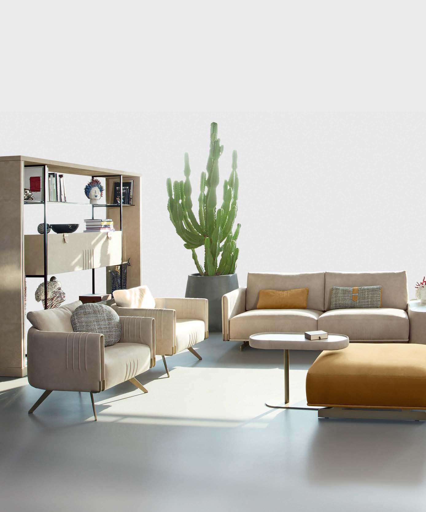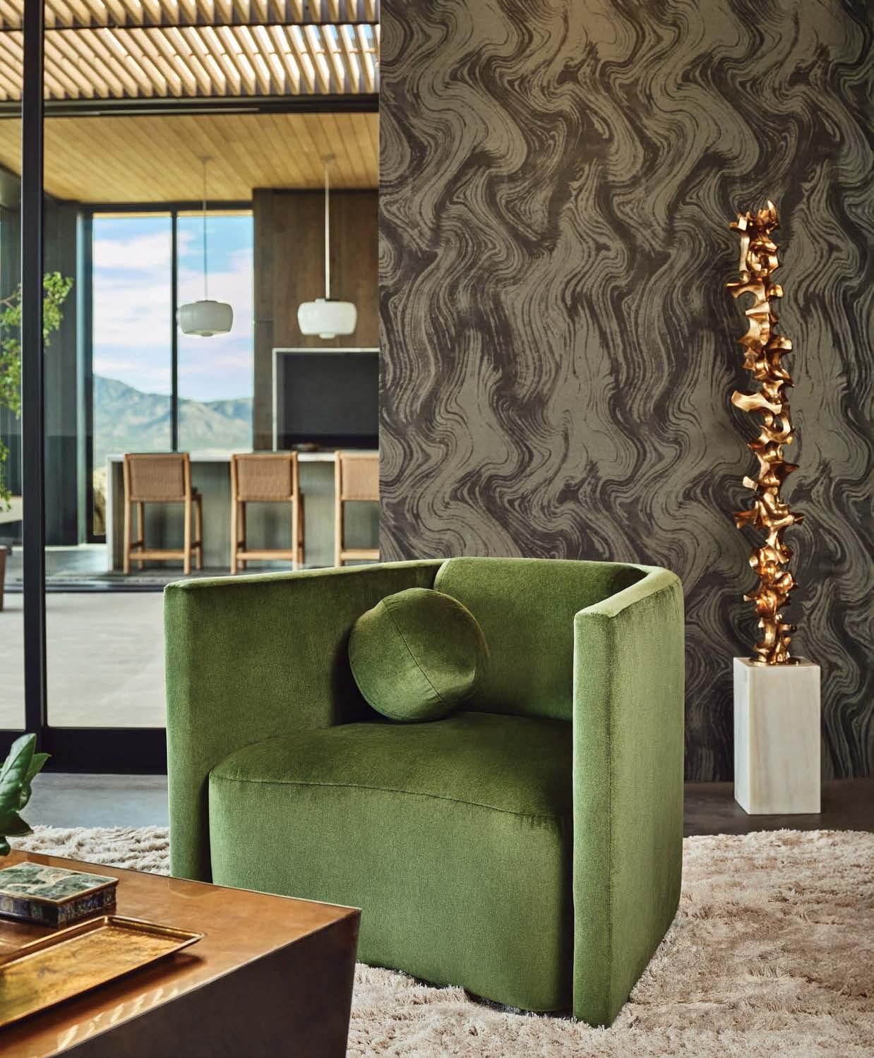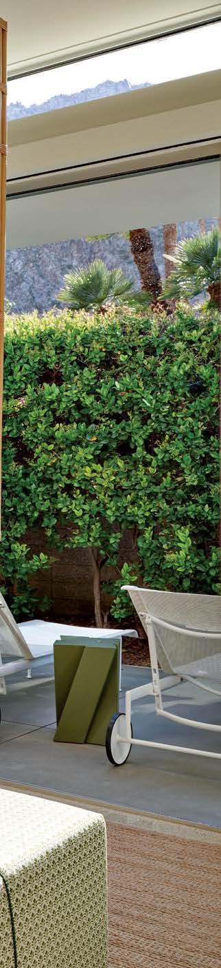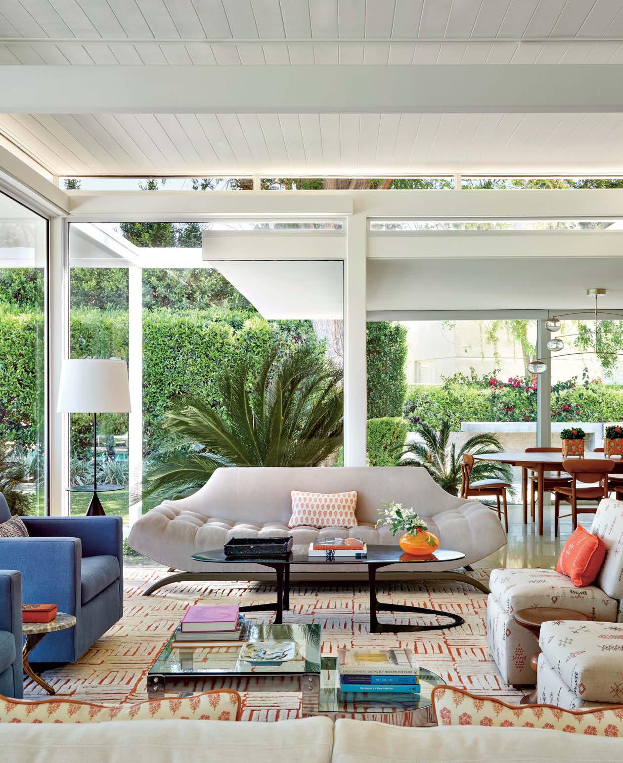ON THE COVER: The living area of an Indian Wells dwelling showcases a masterful mix of pieces selected by designer Emily Summers, including a custom gondola sofa, vintage