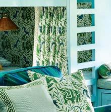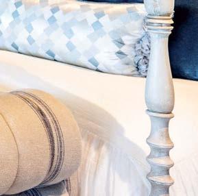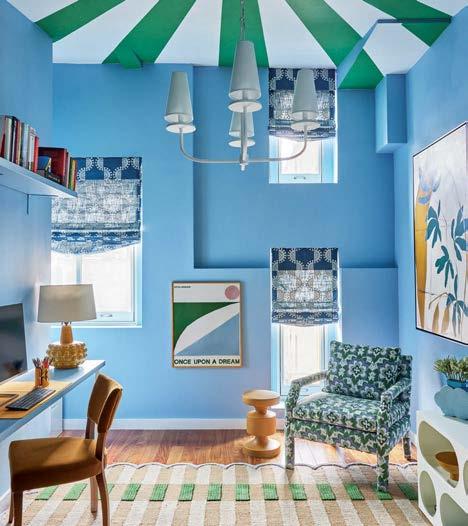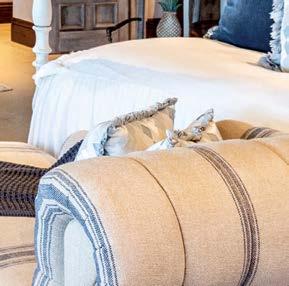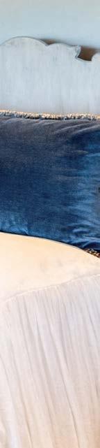 Befitting a vacation retreat, Summers designed the guest bedrooms as in-house departures. The guest casita, for instance, exudes a Bahamian flair, with a rattan canopy bed and green-andwhite fabrics. Another features an embroidered Indian fabric and textiles from Mexico. In contrast, the homeowners’ bedroom is awash in cream and pale blues. “I see primary bedrooms as restful and calm, but the other bedrooms are just fun,” Summers says. “I want guests to have a memorable experience.” The designer can personally attest that the owners, and anyone they invite over, actually do. After all, she’s practically a neighbor. “It’s so nice to create environments that suggest a good time,” she concludes. “And it makes me so happy to see them enjoying the house.”